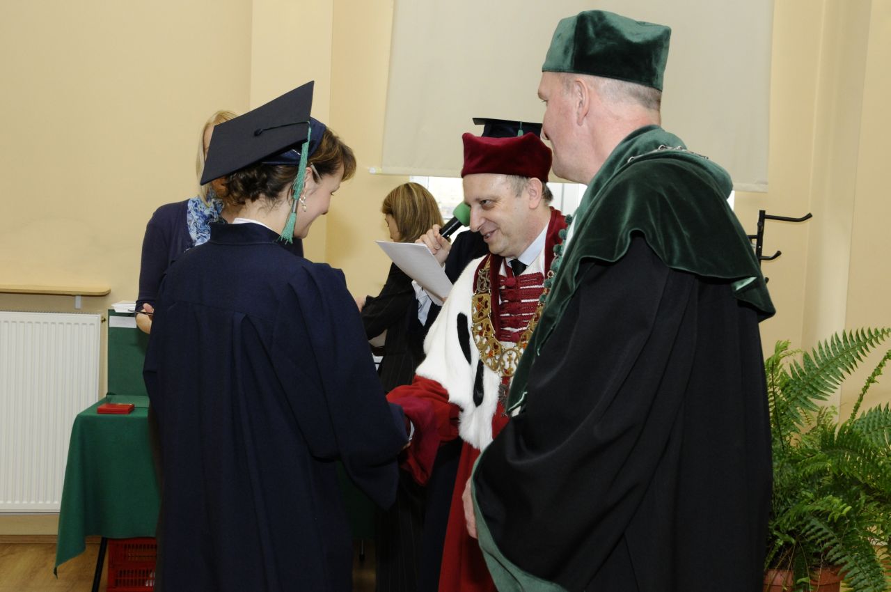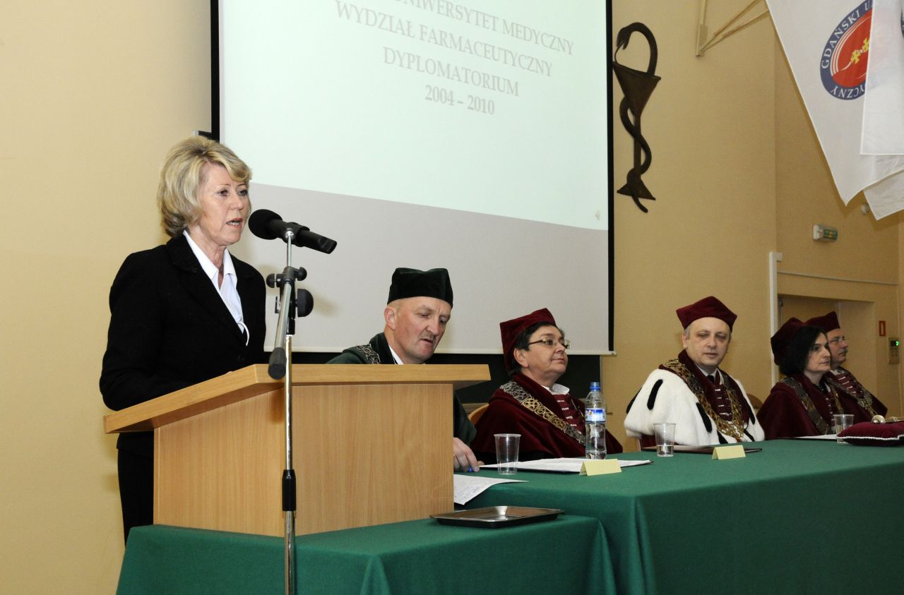 Dziewięćdziesięciu ośmiu absolwentów rocznika 2005-2010 Wydziału Farmaceutycznego GUMed odebrało 15 maja od prof. W. Sawickiego, dziekana Wydziału dyplomy ukończenia studiów. W uroczystości w wypełnionej po brzegi Sali Auditorium Maximum wziął udział prof. Jausz Moryś, rektor GUMed.