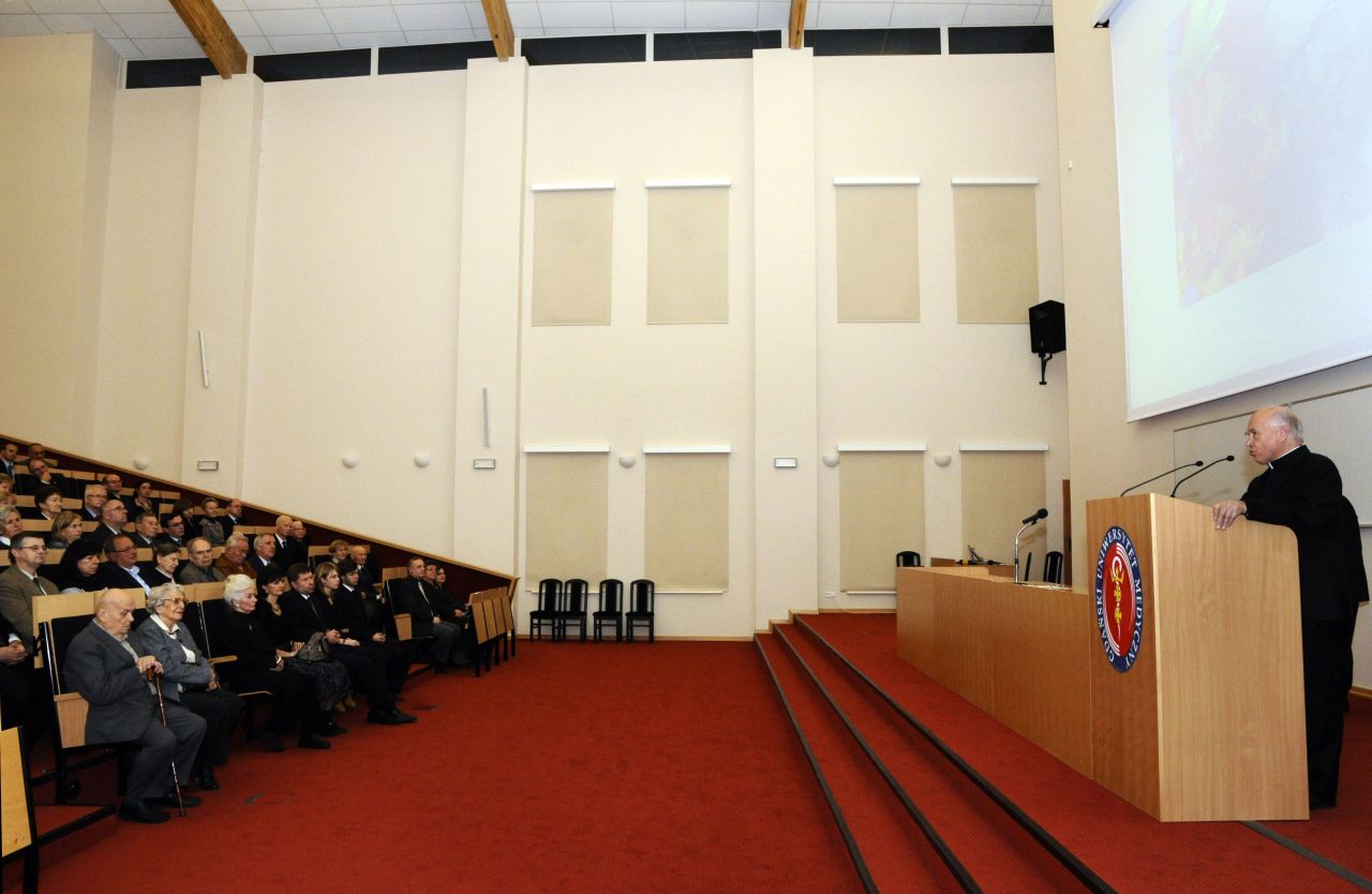 Wstęgę na portrecie prof. Narkiewicza wraz z Rektorem odsłonił prof. Krzysztof Narkiewicz. Zebrani mieli również okazję zapoznać się z życiorysem Profesora oraz obejrzeć film prezentujący Jego sylwetkę i dokonania.