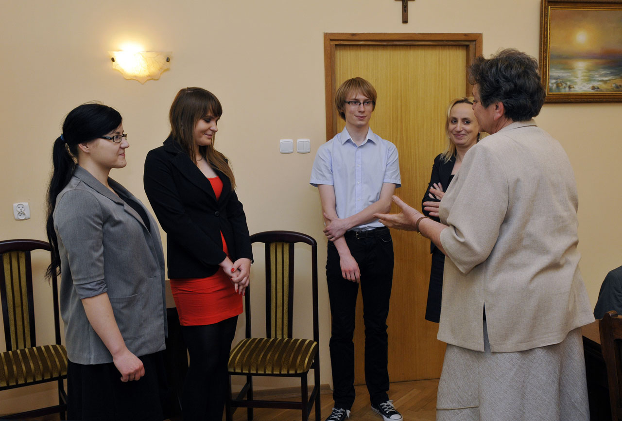 Prorektor ds. studenckich Gdańskiego Uniwersytetu Medycznego Barbara Kamińska spotkała się z laureatami Ogólnopolskiego Konkursu Wiedzy Biochemicznej “Superhelisa” i wręczyła im pamiątkowe dyplomy. Emilia Mech, Klaudia Grabowska i Michał Kunc, studenci II roku Wydziału Lekarskiego GUMed zdobyli I miejsce w klasyfikacji drużynowej konkursu. Michał Kunc został biochemicznym wicemistrzem, natomiast Klaudia Grabowska i Emilia Mech zajęły odpowiednio III i V miejsce w klasyfikacji indywidualnej. Konkurs, organizowany przez Akademię Medyczną we Wrocławiu odbył się 11-12 maja w Czeszowie koło Trzebnicy.