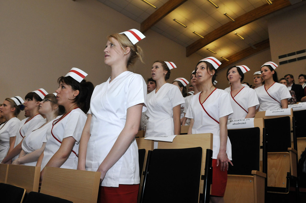 Uroczystość otworzyły ubrane w tradycyjne stroje studentki, które wprowadziły światło (symboliczne lampy z epoki prekursorki zawodu - Florencji Nightingale) jako symbol życia – życia powierzanego opiece. Ceremonię prowadziła dr Aleksandra Gaworska-Krzemińska, prodziekan WNoZ.