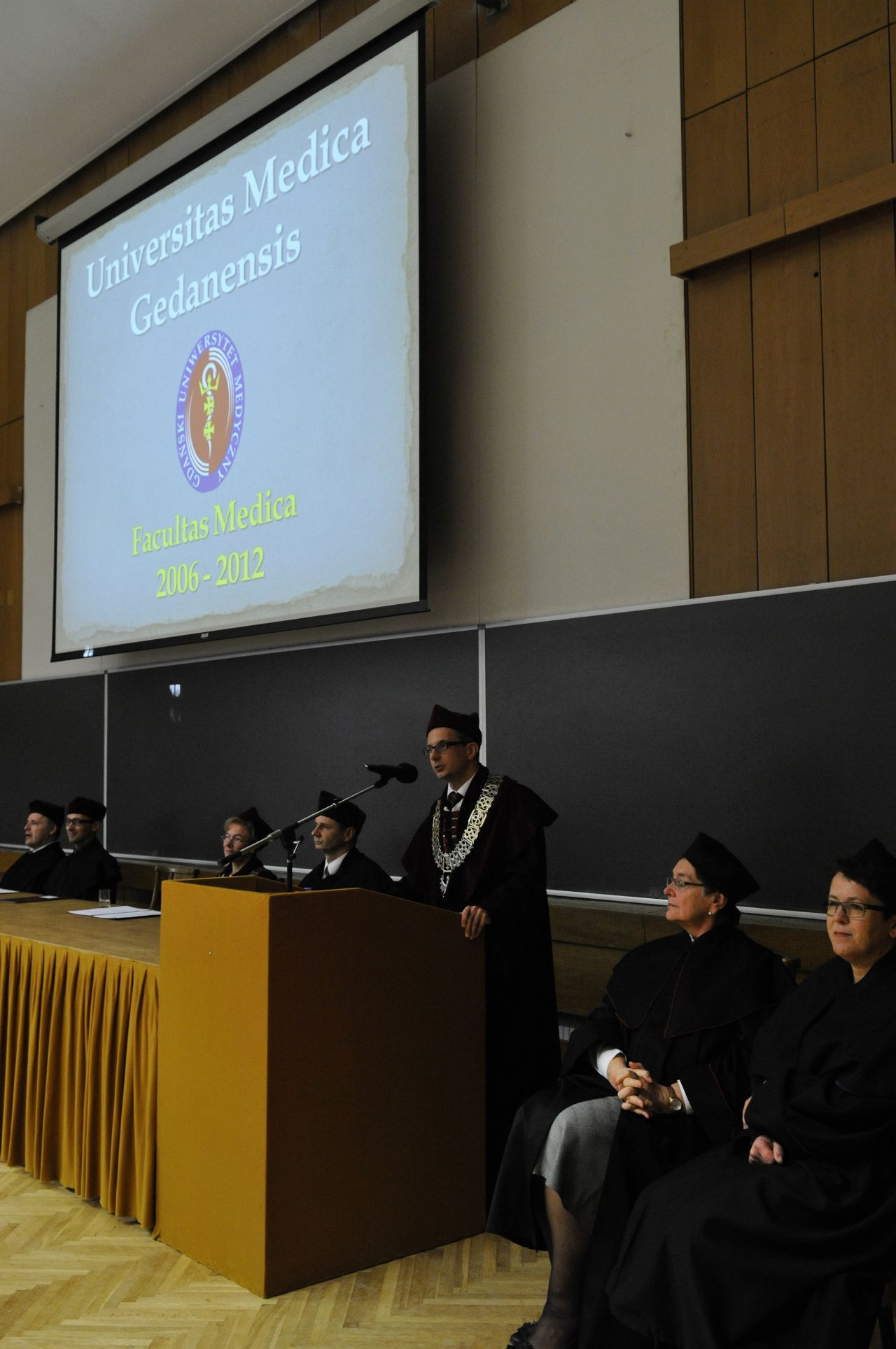 Przemówienia wygłosili dr hab. Maria Dudziak, prof. nadzw., dziekan WL, dr Roman Budziński, prezes Okręgowej Rady Lekarskiej w Gdańsku, dr Jerzy Kossak, wiceprezes Stowarzyszenia Absolwentów oraz dr hab. Barbara Kamińska, prof. nadzw., kierownik Katedry i Kliniki Pediatrii, Gastroenterologii, Hepatologii i Żywienia Dzieci.