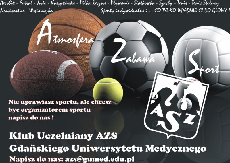 Akademicki Związek Sportowy GUMed koordynuje i organizuje zajęcia sportowe w formie sekcji sportowych i fakultetów sportowych. Sekcje mają charakter wyczynowy, treningi odbywają się kilka razy w tygodniu pod okiem trenera, a członkowie sekcji biorą czynny udział w zawodach na poziomie lokalnym i ogólnopolskim. Zajęcia fakultatywne mają charakter czysto rekreacyjny. AZS organizuje również zawody międzyuczelniane. Od kilku lat AZS odpowiada za część sportową Dni Kultury Studenckiej – “Medykalia”. Kontakt: azs@gumed.edu.pl.