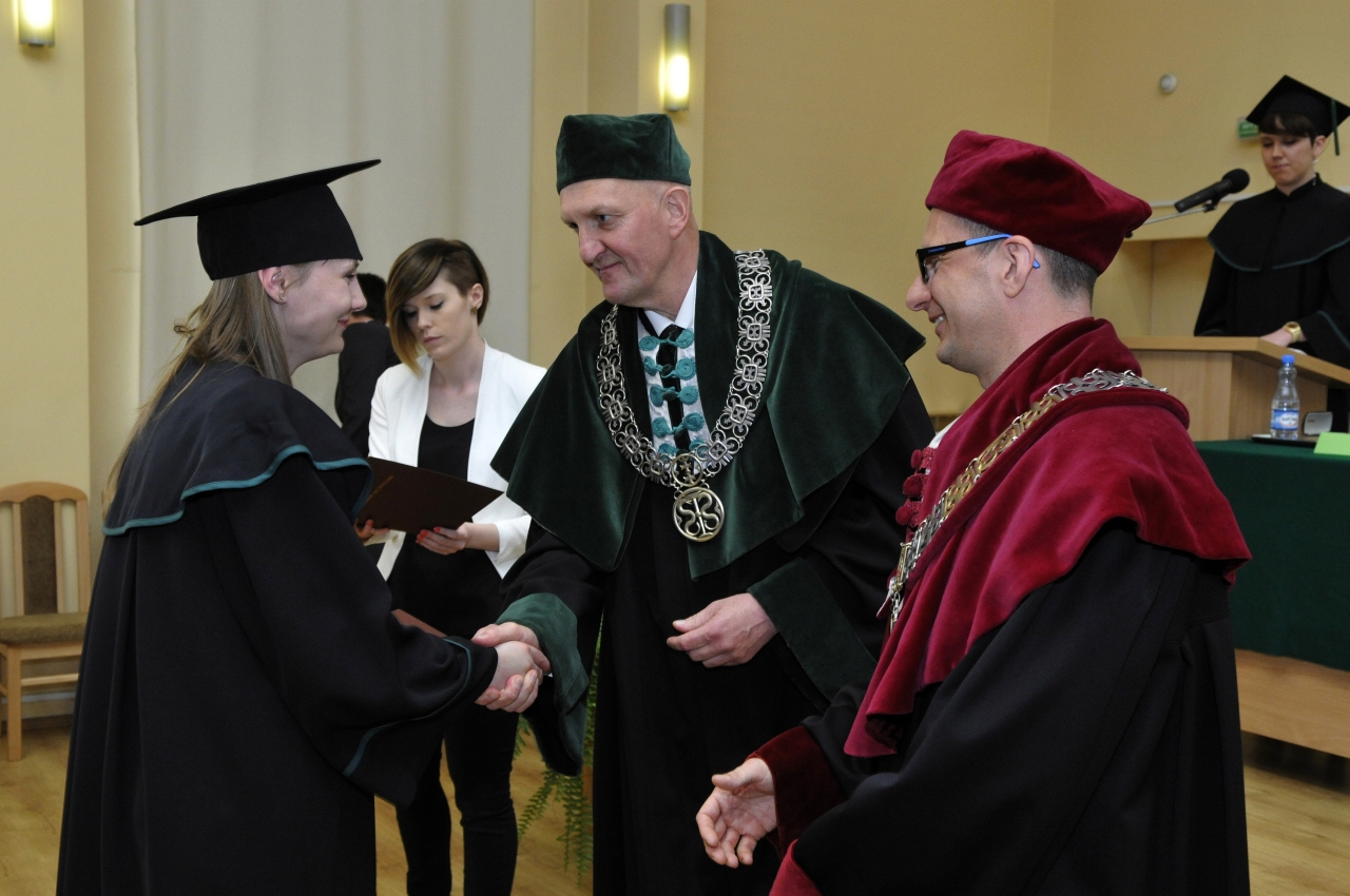 Stu dwudziestu ośmiu magistrów farmacji rocznika 2007-2013 odebrało swoje dyplomy. Uroczystość odbyła się 10 maja br. w Audytorium Maximum Wydziału Farmaceutycznego. Przewodniczył jej dziekan Wydziału Farmaceutycznego z OML prof. Wiesław Sawicki. Absolwenci, po złożeniu przyrzeczenia, odebrali dyplomy z rąk prorektora Marcina Gruchały i dziekana Wiesława Sawickiego. Wyróżniającym się absolwentom wręczono listy gratulacyjne i ufundowane przez Gdańską Okręgową Izbę Aptekarską nagrody książkowe. Za wyniki w nauce nagrodzono: Natalię Dudzińską – laureatkę medalu Primus Inter Pares, Ewę Bartosińską i Annę Bierek. Natomiast za działalność na rzecz społeczności studenckiej Uczelni wyróżniono Karolinę Perskę i Katarzynę Szymkowską, która otrzymała także Nagrodę Rektora za pełnienie z wielkim zaangażowaniem wielu odpowiedzialnych funkcji w organach Uczelni, strukturach Uczelnianego Samorządu Studenckiego oraz organizacjach studenckich i kołach naukowych.