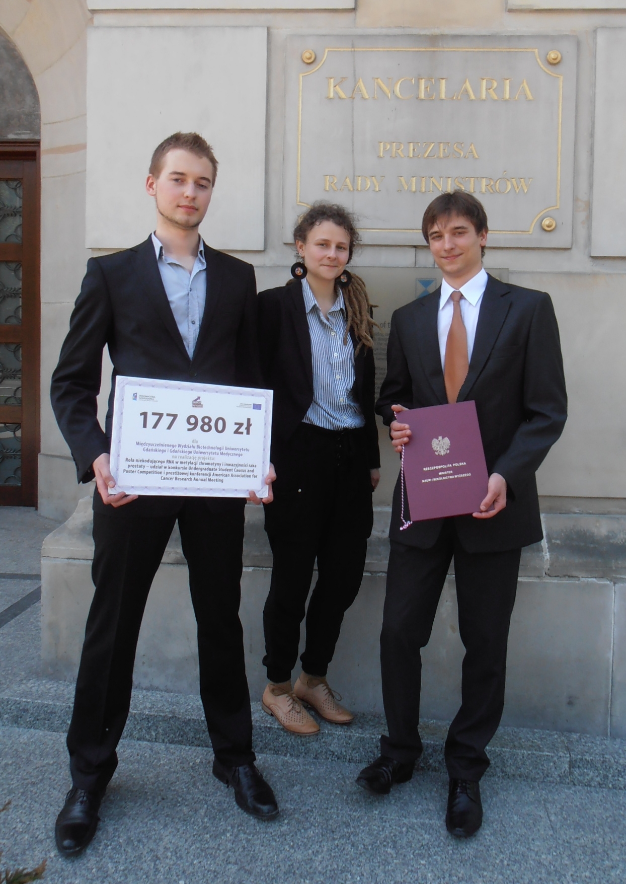 Ponad 170 tys. zł otrzymali studenci z Międzyuczelnianego Wydziału Biotechnologii UG i GUMed – Agata Łuczak, Daniel Jachimowicz i Mikołaj Kocikowski na realizację projektu w ramach rządowego programu “Generacja Przyszłości”. Projekt pod tytułem “Rola niekodującego RNA w metylacji chromatyny i inwazyjności raka prostaty – udział w konkursie Undergraduate Student Caucus and Poster Competition i prestiżowej konferencji American Assocation for Cancer Research Annual Meeting” będzie realizowany pod okiem dr Anny Żaczek z Zakładu Biologii Komórki z Katedry Biotechnologii Medycznej MWB UG i GUMed.