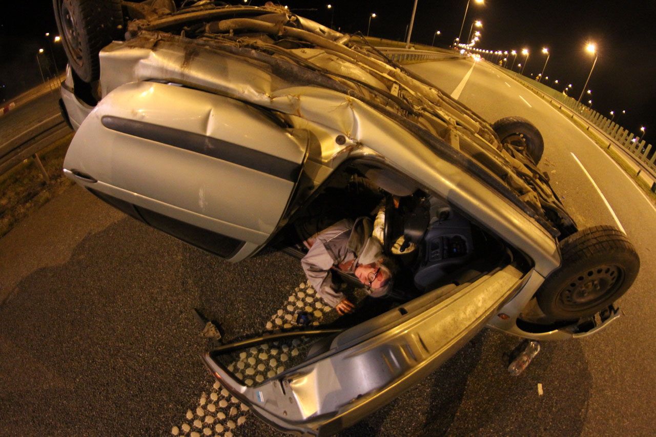 Jak najlepiej spędzić bardzo chłodny, październikowy wieczór? Można zająć się czytaniem książki przy kubku gorącej herbaty, obejrzeć jakiś film albo wziąć udział w symulacji masowego wypadku komunikacyjnego na odcinku autostrady A1 w MOP Kleszczewko. Tę ostatnią opcję spędzenia wolnego wieczoru wybrali właśnie studenci z SKN Medycyny Ratunkowej. W nocy z 3 na 4 października br. odbyły się ćwiczenia straży pożarnej, których celem było sprawdzenie możliwości taktycznych, doskonalenie działań i współpracy pomiędzy jednostkami ratowniczo-gaśniczymi, zespołami pogotowia ratunkowego, specjalistycznymi grupami ratownictwa technicznego i służbami operatora autostrady w czasie zdarzeń masowych. Scenariusz przewidywał wypadek drogowy, w którym kierowca samochodu ciężarowego przewożącego maszyny drogowe próbuje ominąć ludzi, wpada w poślizg, taranuje bariery ochronne i uderza w dwa samochody osobowe jadące w kierunku przeciwnym. Pieszych miały przygnieść maszyny drogowe, a z nimi miał się zderzyć autobus. W ćwiczeniach wzięło udział 60 strażaków z Komendy Wojewódzkiej PSP w Gdańsku, Komendy Powiatowej w Pruszczu Gdańskim i Tczewie, OSP z Pszczółek, Łęgowa i Rościszewa. Pozorantów z GUMed-u było 14. Odpowiednio przygotowani przez strażaków studenci – przede wszystkim finezyjnie pomalowani – zostali poinstruowani w zakresie odniesionych obrażeń i parametrów życiowych. Miało im to umożliwić dobrą symulację. Następnie rozlokowano ich po odpowiednich stanowiskach, gdzie starali się wiarygodnie przedstawić określone przypadki przybyłym na miejsce ratownikom. – Poza dobrą zabawą i ciepłym poczęstunkiem na koniec, była to też świetna okazja do nauki – twierdzą Ewa Sendrowska i Kinga Tatara, uczestniczki akcji. – Teraz już wszyscy wiemy jak ważne jest dobre zorganizowanie akcji ratunkowej, przeprowadzenie segregacji w systemie START, porządne założenie kołnierza szyjnego czy nawet fakt, że okrycie folią termiczną naprawdę wiele zmienia.