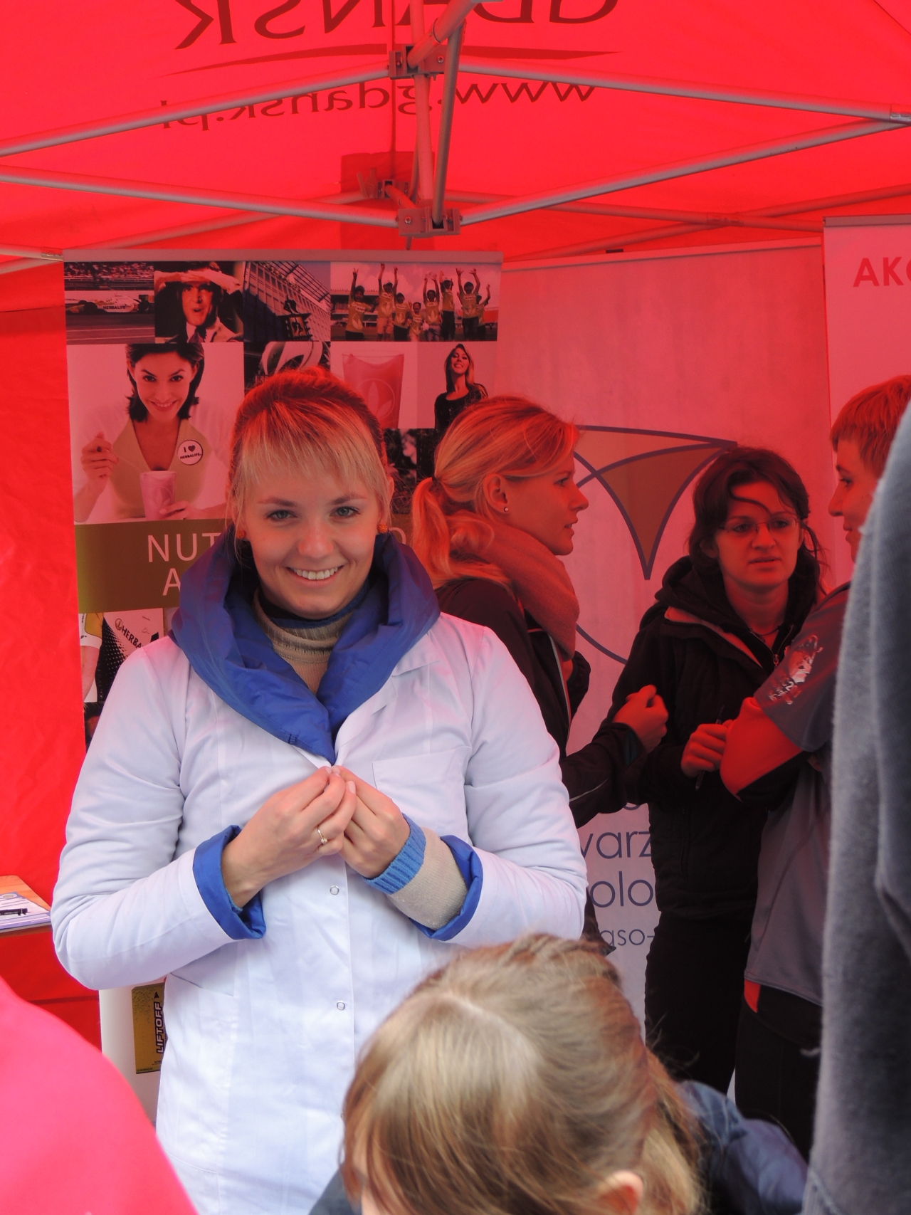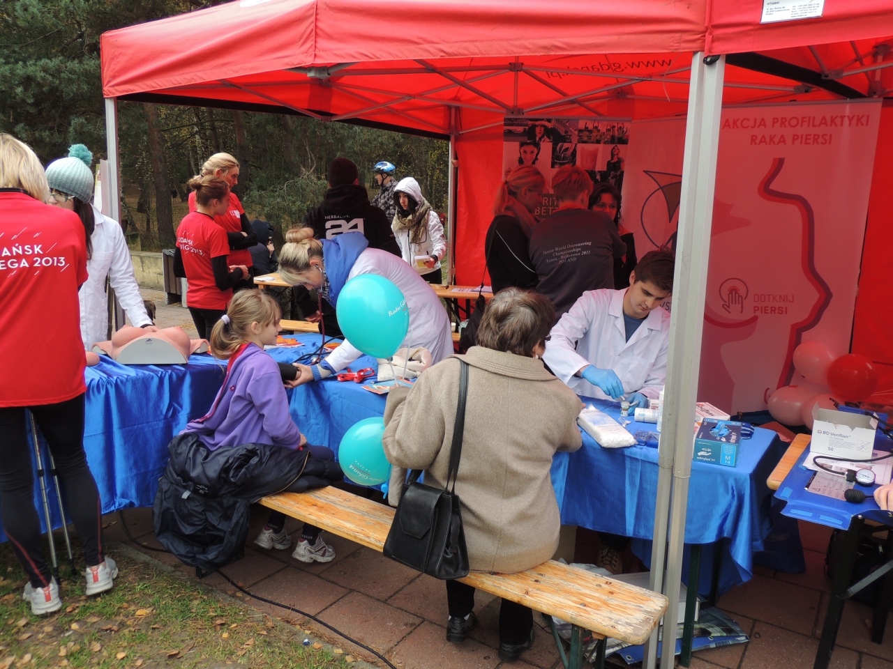 Członkowie Studenckiego Koła Naukowego przy Katedrze i Klinice Chirurgii Onkologicznej oraz Studenckiego Koła Naukowego Anestezjologii i Intensywnej Terapii Gdańskiego Uniwersytetu Medycznego uczestniczyli w V edycji imprezy Gdańsk Biega, która odbyła się 3 listopada br. przy molo w Gdańsku – Brzeźnie. Studenci mierzyli ciśnienie oraz poziom stężenia glukozy we krwi, uczyli jak badać piersi oraz przekonywali do zdrowego trybu życia. Nie zabrakło też porad jak postępować w przypadku zadławienia, jak udrożnić drogi oddechowe, wentylować, a nawet jak założyć wenflon. A to wszystko na profesjonalnych manekinach.