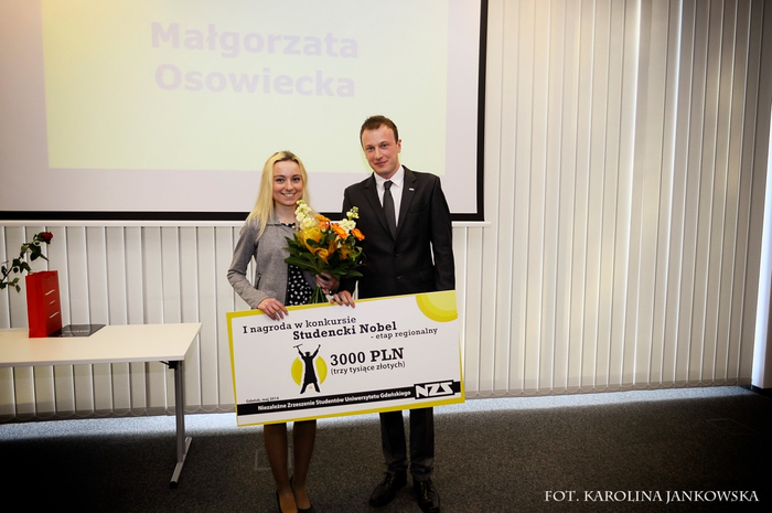 Mikołaj Frankiewicz, student V roku kierunku lekarskiego został uczelnianym reprezentantem w konkursie Studencki Nobel 2014. W tegorocznej edycji o miano najlepszego studenta z Pomorza zmagało się 9 żaków. Regionalna Gala Finałowa Konkursu odbyła się 19 maja br. w Centrum Konferencyjno-Szkoleniowym „Starter”. Podczas spotkania nagrodzono najlepszych studentów z pomorskich uczelni i przyznano tytuł Laureata Regionalnego, który trafił do Małgorzaty Osowieckiej z sopockiej Szkoły Wyższej Psychologii Społecznej.