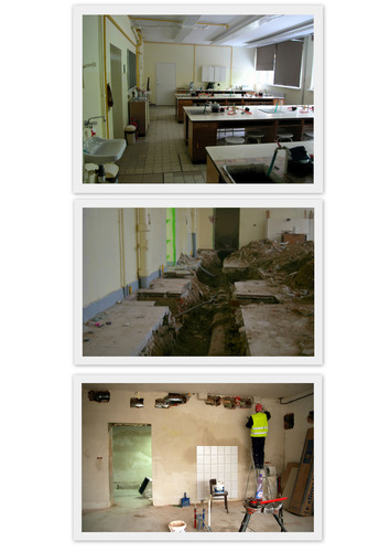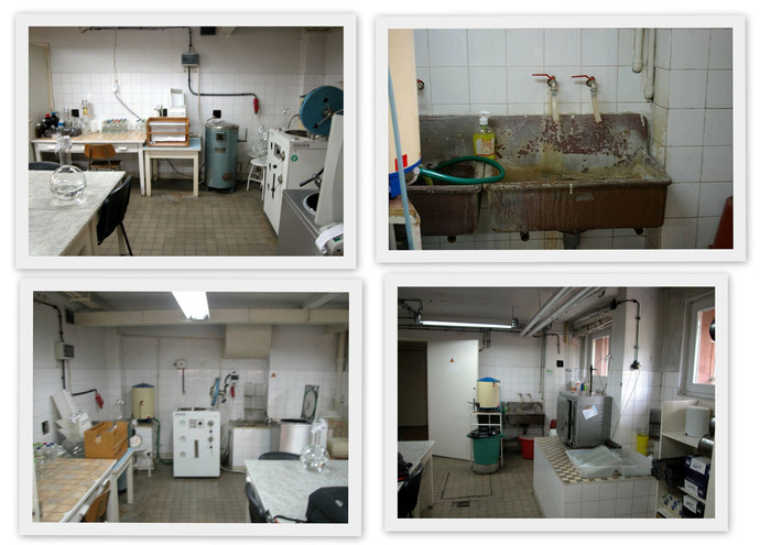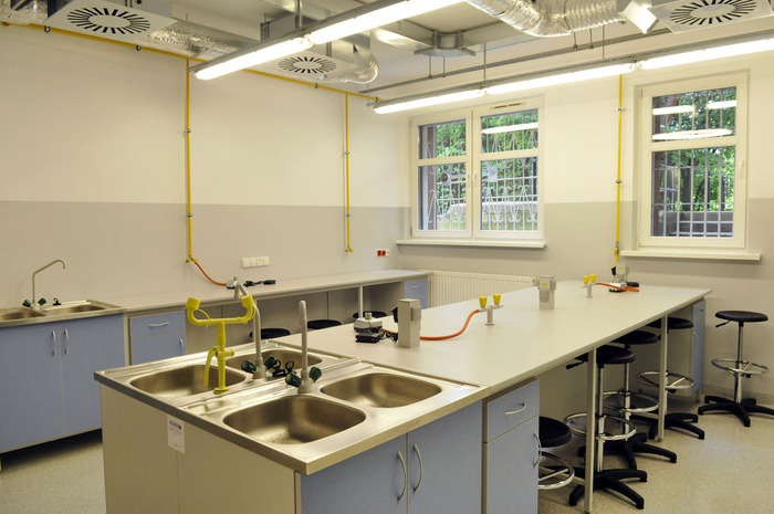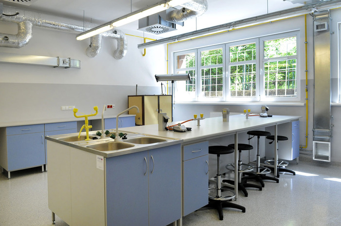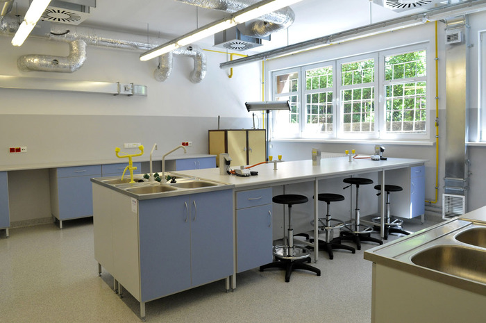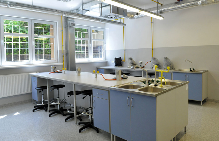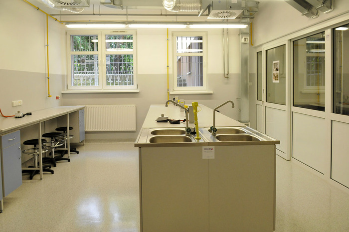 Dzięki modernizacji i przebudowie instalacji wentylacyjnej udało się powiększyć powierzchnię użytkową Katedry i wygospodarować nowe pomieszczenia laboratoryjne. Zmodernizowano laboratoria i pracownie o powierzchni ponad 300 m2, w tym 3 pracownie naukowo-dydaktyczne o powierzchni 100 m2. W efekcie prac remontowych wydzielono dodatkowe pomieszczenia specjalistyczne przystosowane do pracy w warunkach sterylnych, pokój chłodnia, pokój cieplarka, pomieszczenia zaplecza technicznego. Laboratoria zajmowane są przez Katedrę od roku 1970, kiedy to ówczesny Zakład Bakteriologii Farmaceutycznej przeniósł się do nowej siedziby na terenie Wydziału Farmaceutycznego przy al. Hallera 107. Wtedy też miały miejsce najpoważniejsze prace remontowe przystosowujące zajmowane pomieszczenia na potrzeby laboratoriów.