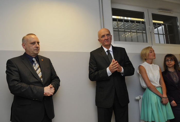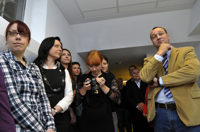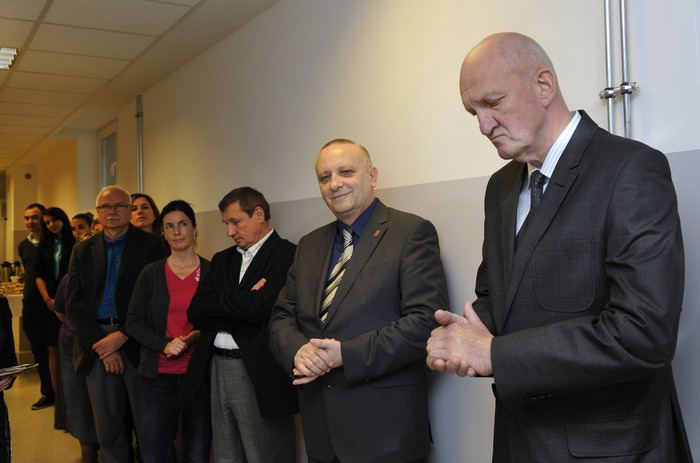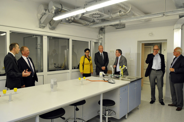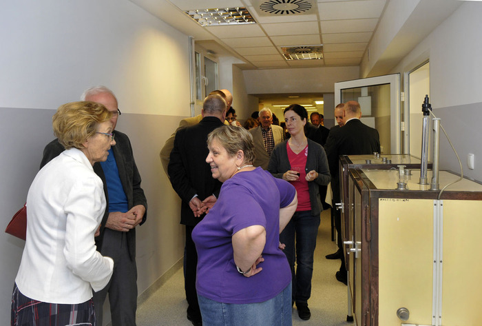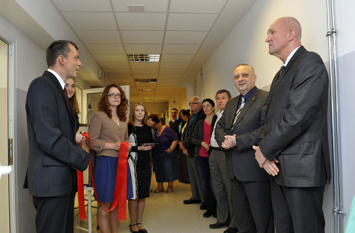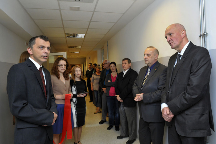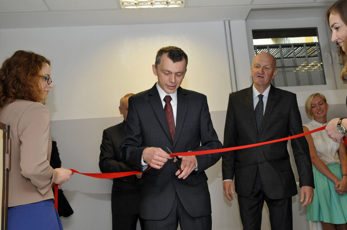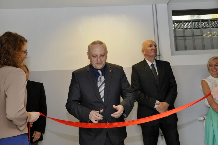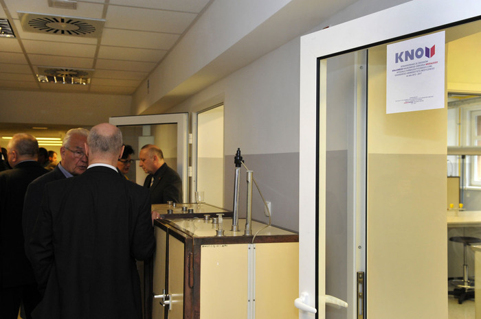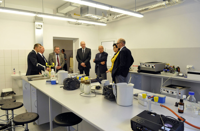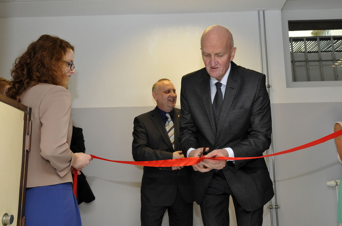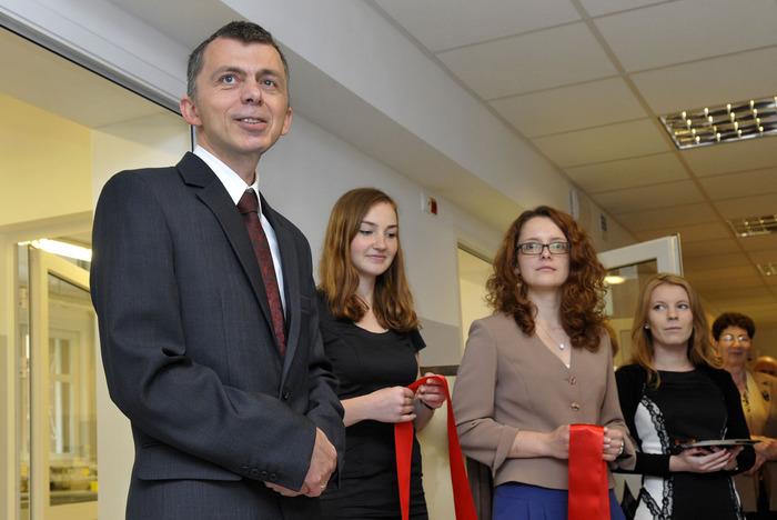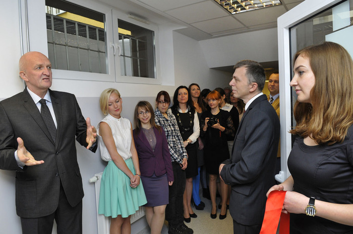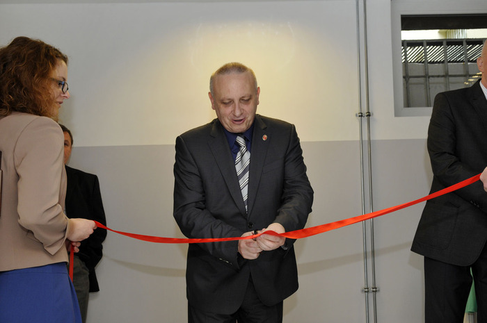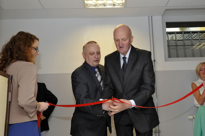 Uroczyste otwarcie wyremontowanych ze środków KNOW pomieszczeń laboratorium naukowo-dydaktycznego Katedry i Zakładu Mikrobiologii Farmaceutycznej odbyło się 4 czerwca br. Symboliczną wstęgę przeciął rektor prof. Janusz Moryś, któremu towarzyszyli: prorektor ds. nauki prof. Tomasz Bączek, prorektor ds. rozwoju i organizacji kształcenia prof. Leszek Bieniaszewski, kanclerz mgr Marek Langowski zastępca kanclerza mgr Zbigniew Krawiec, a ze strony Wydziału – dziekan prof. Wiesław Sawicki, kierownik Katedry dr hab. Krzysztof Waleron oraz licznie przybyli Członkowie Rady Wydziału Farmaceutycznego z OML. W uroczystości uczestniczyli także goście z Międzyuczelnianego Wydziału Biotechnologii UG i GUMed – dziekan prof. Igor Konieczny i prof. Ewa Łojkowska, dziekan MWB UG i GUMed ubiegłych kadencji wraz ze współpracownikami. Obecny był również prof. Wiesław Makarewicz, były rektor GUMed i pierwszy dziekan Międzyuczelnianego Wydziału Biotechnologii, a także byli pracownicy Katedry i Zakładu Mikrobiologii Farmaceutycznej – dr Maria Wroczyńska-Pałka, dr hab. Władysław Werel oraz emerytowani pracownicy Katedry.