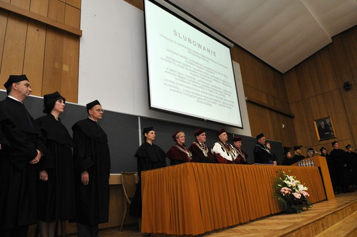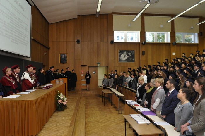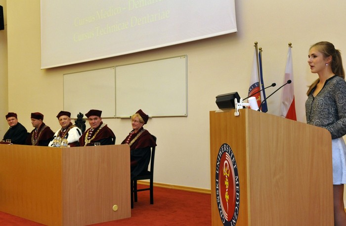 Stu osiemdziesięciu dwóch studentów pierwszego roku Wydziału Farmaceutycznego z Oddziałem Medycyny Laboratoryjnej oficjalnie rozpoczęło rok akademicki. Nowych żaków na Wydziale immatrykulowano 25 września br. Studia na kierunku farmacja rozpoczęły 134 osoby, a na kierunku analityka medyczna 48 osób.