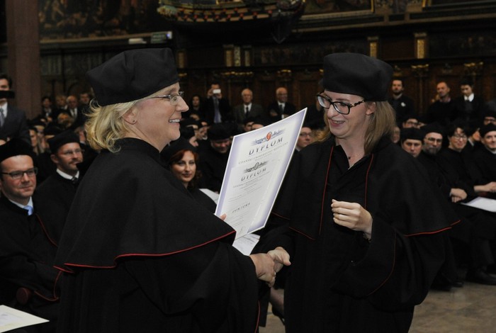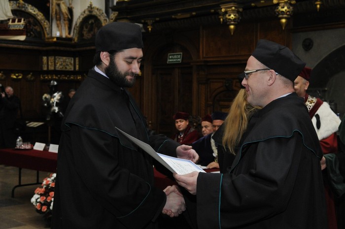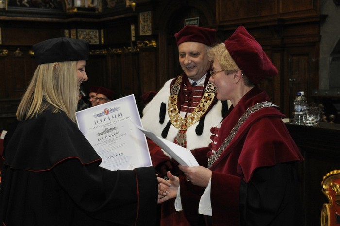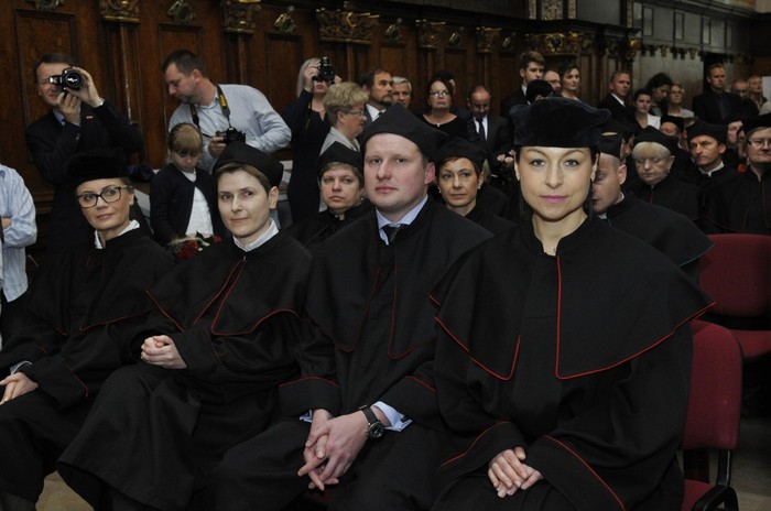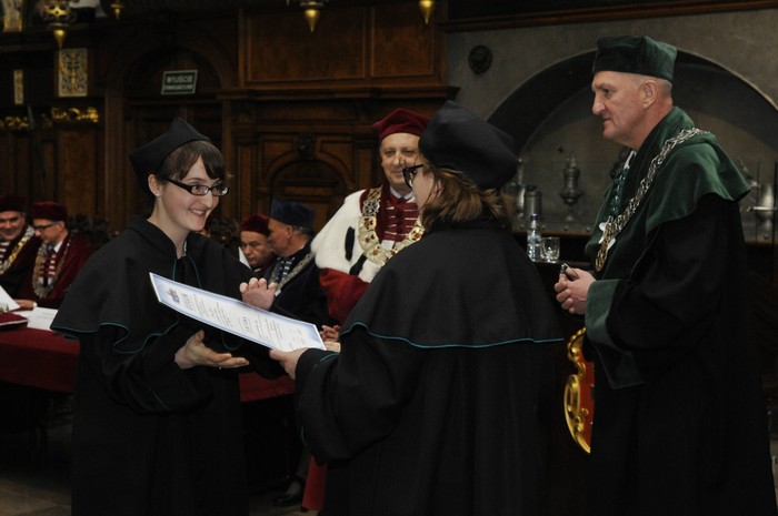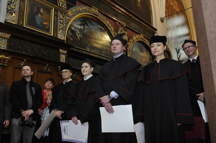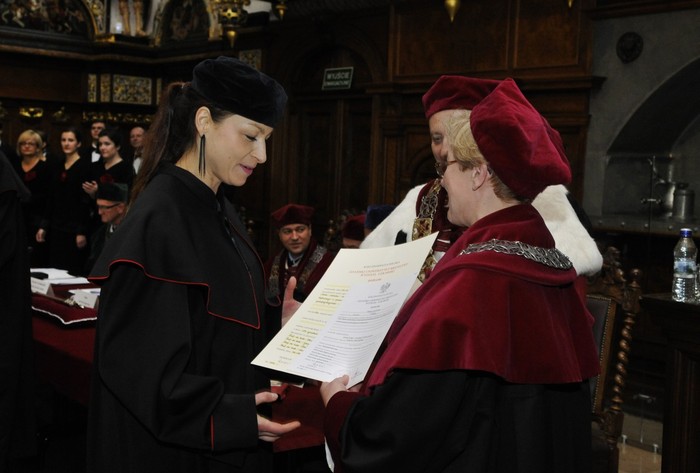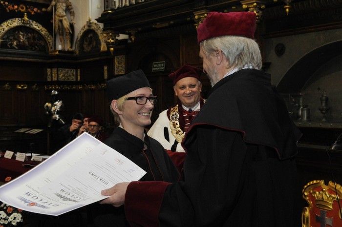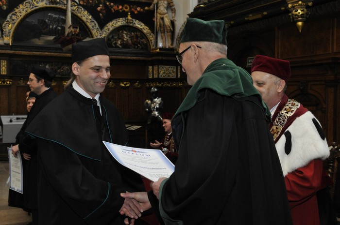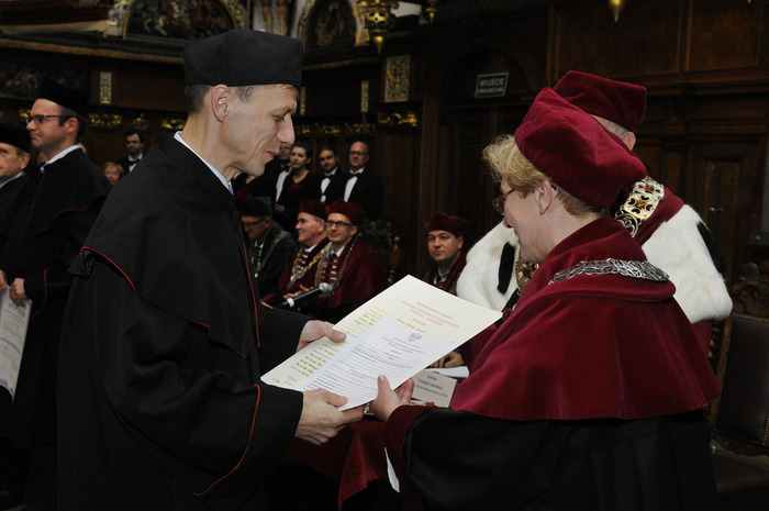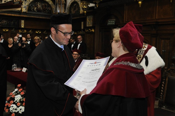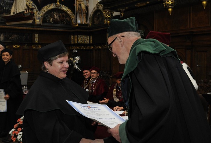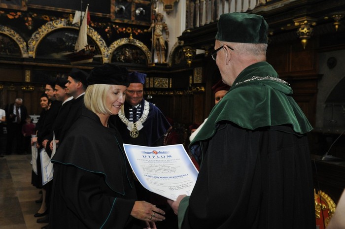 Dziekani odczytali treść dyplomu i gratulując wręczali je swoim habilitantom. Dziekan Wydziału Lekarskiego wręczył dyplomy doktora habilitowanego nauk medycznych: dr hab. Ewie Bień, dr. hab. Andrzejowi Chamieni, dr. hab. Wiesławowi Cubale, dr. hab. Dariuszowi Andrzejowi Gąseckiemu, dr hab. Dagmarze Hering, dr. hab. Michałowi Kaliszanowi, dr hab. Joannie Karbowskiej, dr hab. Annie Marii Korzon-Burakowskiej, dr. hab. Sławomirowi Lizakowskiemu, dr. hab. Krzysztofowi Mrózkowi, dr hab. Jolancie Neubauer-Geryk, dr. hab. Krzysztofowi Rębale, dr. hab. Markowi Roslanowi, dr. hab. Robertowi Sabiniewiczowi, dr hab. Monice Justynie Sakowicz-Burkiewicz, dr. hab. Tomaszowi Stefaniakowi, dr hab. Joannie Stefanowicz, dr hab. Agnieszce Szlagatys-Sidorkiewicz, dr hab. Jolancie Wierzbie i dr. hab. Piotrowi Witkowskiemu.