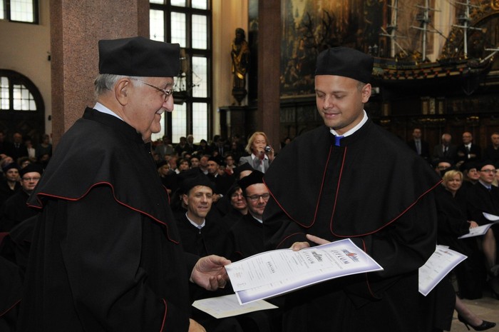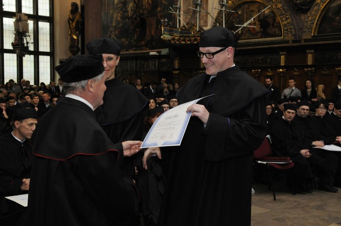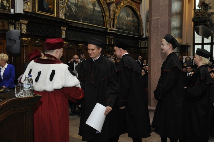 Uroczystość rozpoczął Rektor powitaniem gości, promotorów i doktorantów, które uświetniło odpalenie feluki. Po przemówieniu prof. Morysia odbyło się uroczyste wręczenie dyplomów doktora habilitowanego.