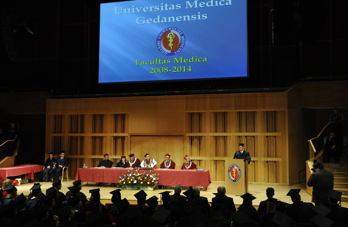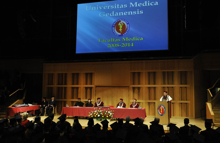 Dwustu dwudziestu dziewięciu absolwentów Wydziału Lekarskiego kierunku lekarskiego rocznika 2008-2014 złożyło przyrzeczenie lekarskie i odebrało już swoje dyplomy. Dyplomatorium odbyło się 8 listopada 2014 r. w Polskiej Filharmonii Bałtyckiej im. Fryderyka Chopina w Gdańsku. Uroczystości przewodniczył rektor prof. Janusz Moryś, który w swoim przemówieniu pogratulował wszystkim dyplomantom oraz życzył im dalszych sukcesów. Głos zabrali również prof. Maria Dudziak, dziekan WL, prof. Wiesław Makarewicz, wiceprezes Stowarzyszenia Absolwentów, dr Tomasz Gorczyński, wiceprezes Okręgowej Rady Lekarskiej w Gdańsku, lek. Marcin Markiewicz, absolwent kierunku lekarskiego oraz Dymitr Rychter, przedstawiciel studentów VI roku kierunku lekarskiego. W tym roku medal Primus Inter Pares otrzymała absolwentka kierunku lekarskiego lek. Alicja Góralczyk.