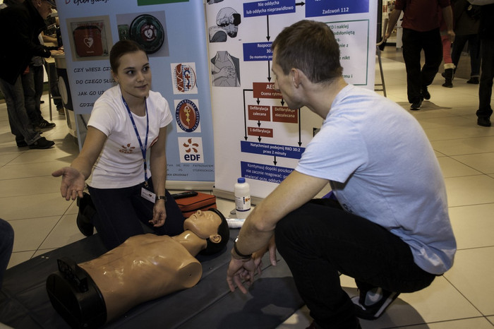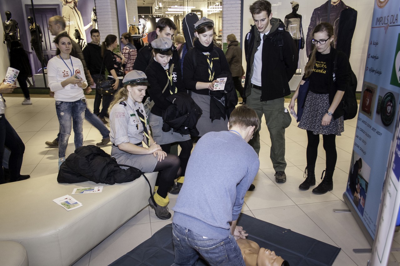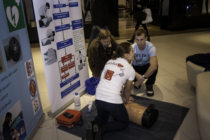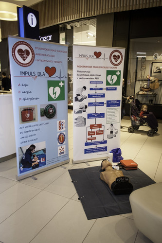 Sobotni dzień nadaje się w sam raz nie tylko na zakupy, ale i poszerzenie swojej wiedzy o użyciu i bezpiecznym stosowaniu AED. Wiedzą o tym najlepiej studenci z Koła Naukowego przy Klinice Anestezjologii i Intensywnej Terapii, którzy 8 listopada 2014 roku, w ramach programu “Impuls dla serca”, krzewili wiedzę o AED wśród klientów Galerii Handlowej Riviera w Gdyni. Pomimo silnej konkurencji ze strony najsłynniejszych światowych marek, anestezjologicznym zapaleńcom udało się podnieść świadomość sporej grupy odwiedzających na temat bezpiecznego i skutecznego użycia AED w przypadkach nagłego zatrzymania krążenia. Jakkolwiek teren okazał się wymagający, to uzbrojeni w zapał i energię przyszli lekarze, po raz kolejny dołożyli swoją cegiełkę do budowania świadomości mieszkańców Trójmiasta i oswajania ich z AED.