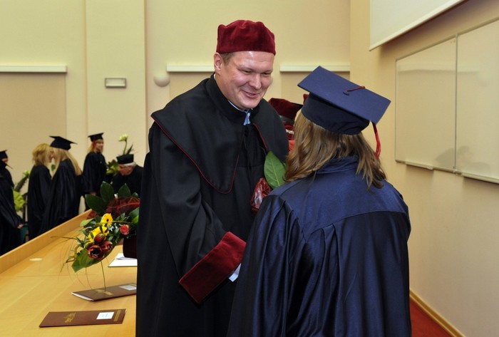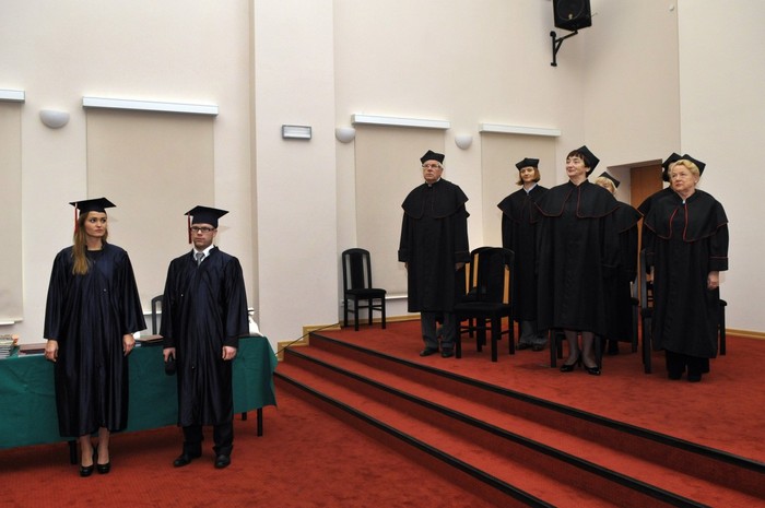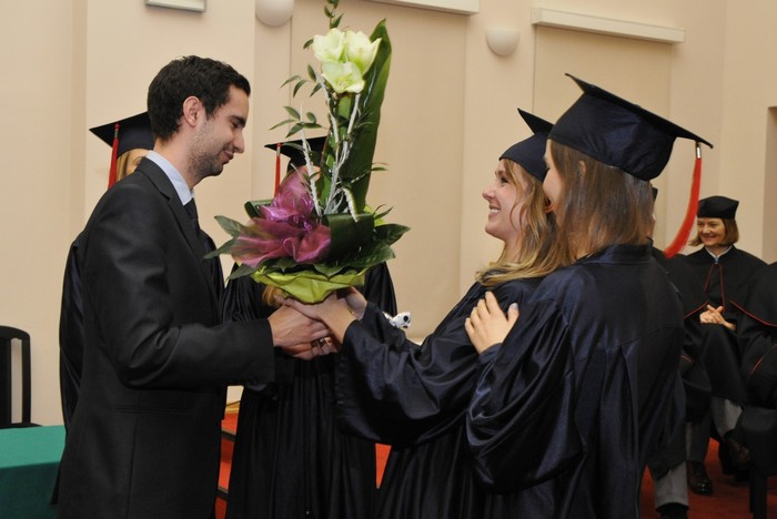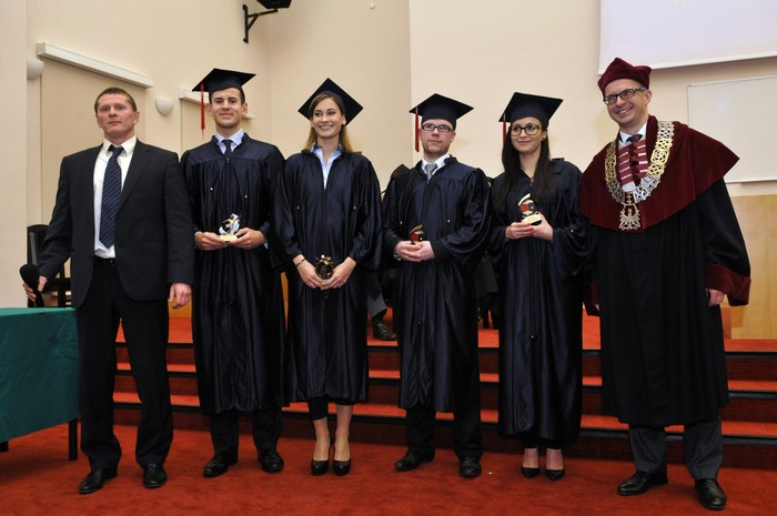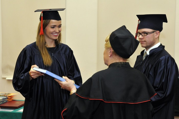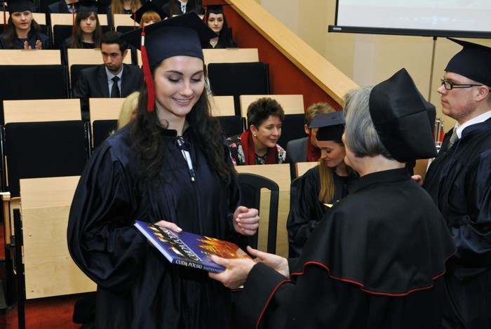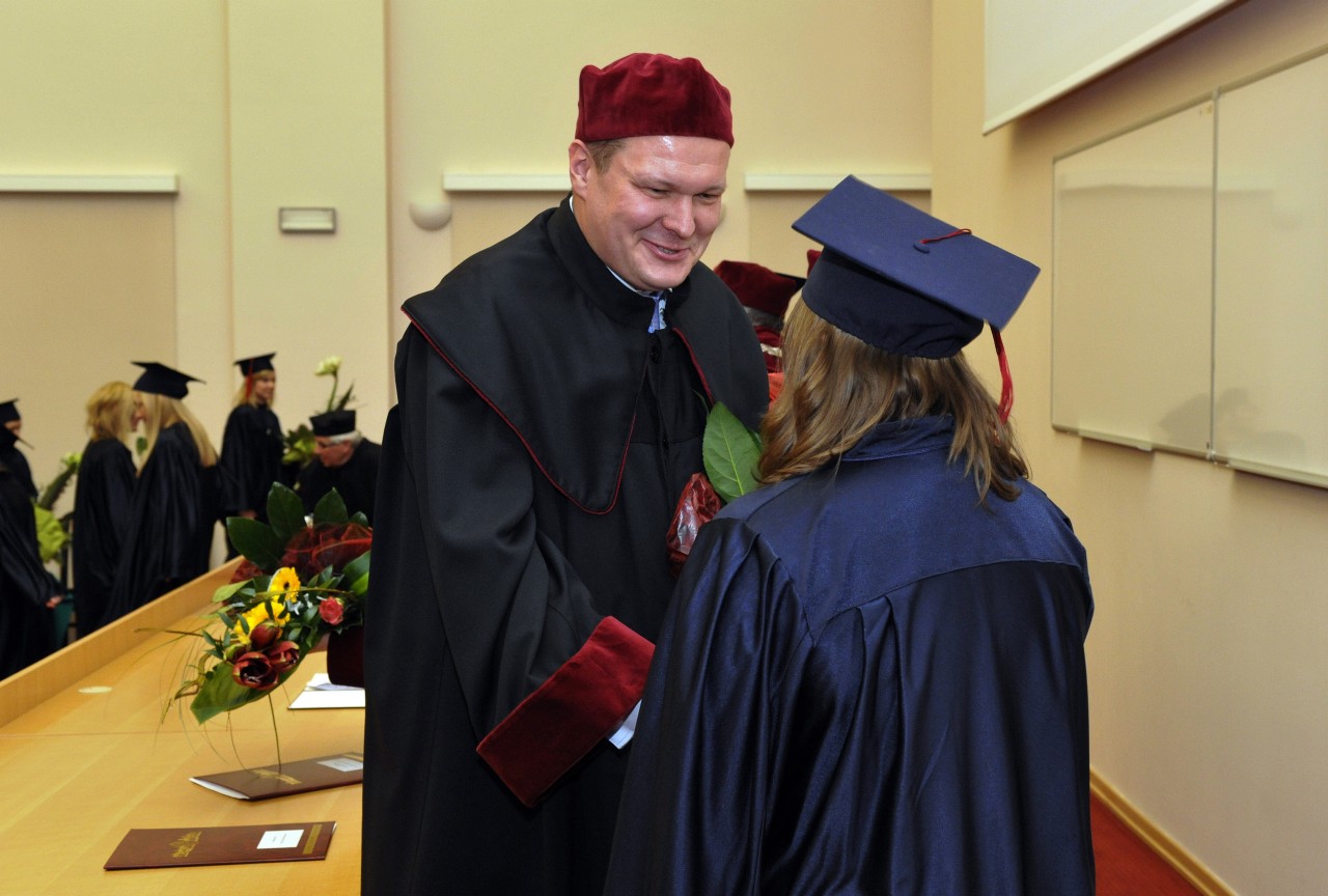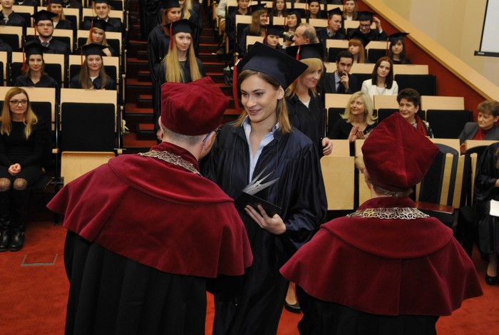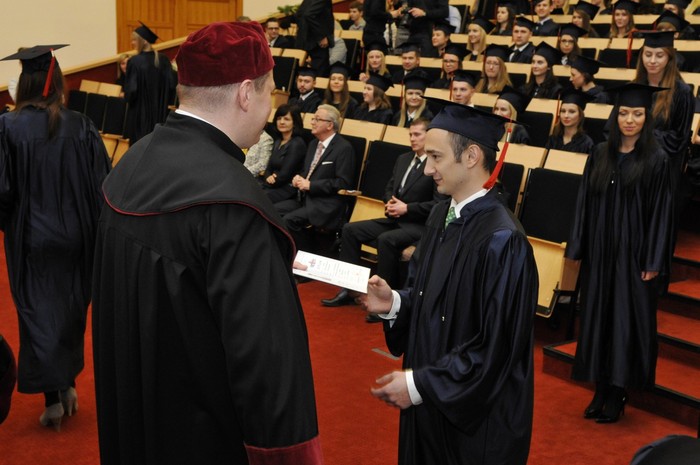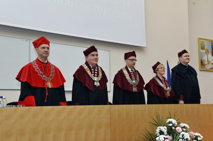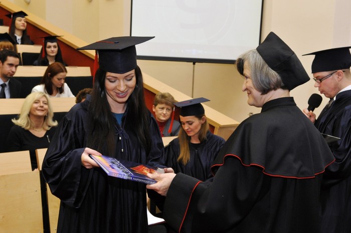 Absolwenci kierunku lekarsko-dentystycznego rocznika 2009-2014 i kierunku techniki dentystyczne rocznika 2011-2014 odebrali dyplomy 21 listopada br. z rąk prorektora ds. studenckich prof. Marcina Gruchały, dziekana Wydziału Lekarskiego prof. Marii Dudziak oraz prodziekana WL, kierownika Oddziału Stomatologicznego dr. hab. Marka Niedoszytko. Uroczystość odbyła się w Auditorium Primum im. Olgierda Narkiewicza w Atheneum Gedanense Novum. Dyplomy odebrało 55 absolwentów kierunku lekarsko-dentystycznego i 25 kierunku techniki dentystyczne. Przemówienia wygłosili prorektor prof. Marcin Gruchała, dziekan prof. Maria Dudziak, prodziekan dr hab. Marek Niedoszytko oraz zaproszeni honorowi goście: lek. dent. Halina Porębska, wiceprezes Okręgowej Rady Lekarskiej w Gdańsku, prof. Barbara Adamowicz-Klepalska, członek Rady Naukowej przy Ministrze Zdrowia, wieloletni kierownik Katedry i Zakładu Stomatologii Wieku Rozwojowego, prof. Maria Prośba-Mackiewicz, prezes Gdańskiego Oddziału PTS, wieloletni kierownik Zakładu Technik Dentystycznych i Zaburzeń Czynnościowych Narządu Żucia oraz prof. Zdzisław Bereznowski, wiceprezes Stowarzyszenia Absolwentów, kierownik Katedry i Zakładu Protetyki Stomatologicznej. Po uroczystym wręczeniu licznych nagród i listów gratulacyjnych dla wyróżnionych absolwentów głos zabrali: lek. dent. Agata Joniak, absolwentka kierunku lekarsko-dentystycznego oraz Paulina Wojtalik, przedstawiciel studentów V roku kierunku lekarsko-dentystycznego.