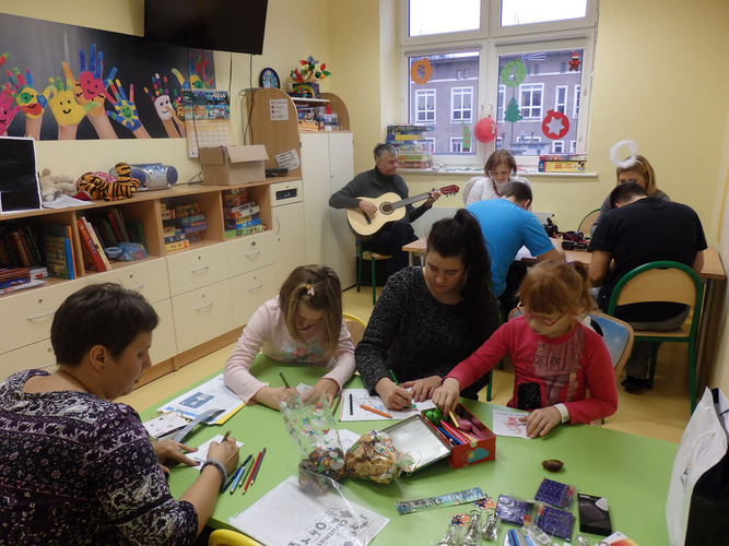 W trakcie spotkania dzieci miały okazje poznać nowe słowa po angielsku związane z tradycją bożonarodzeniową, udekorować świetlicę swoimi świątecznymi pracami oraz wspólnie zaśpiewać „Jingle Bells”. Przepięknie na gitarze grał świąteczne melodie Adam Niedorezo.