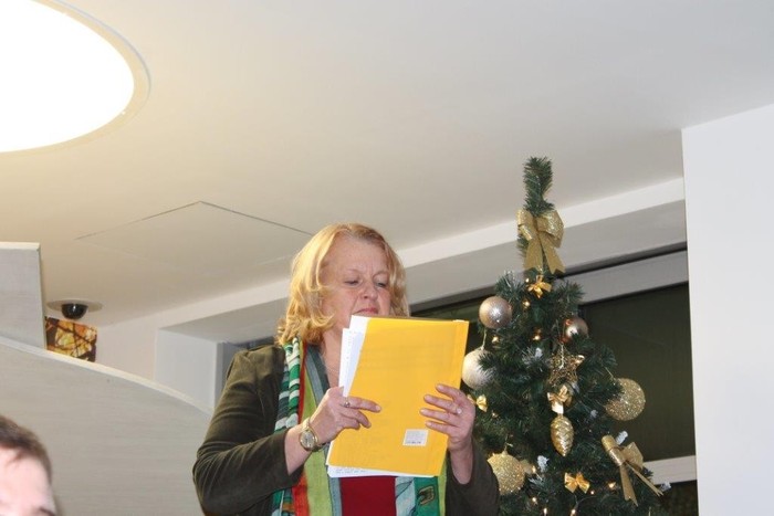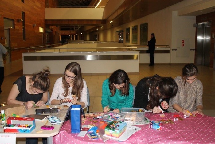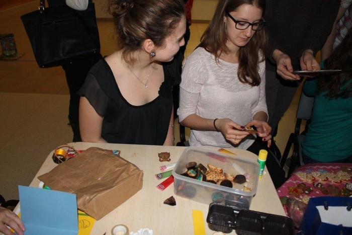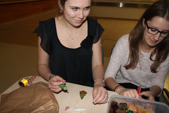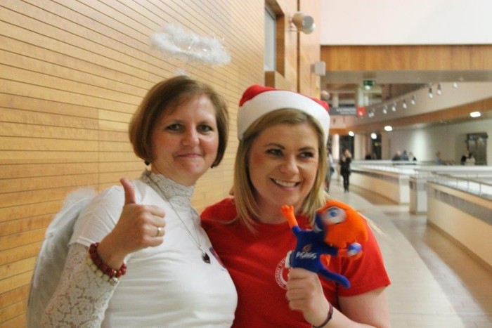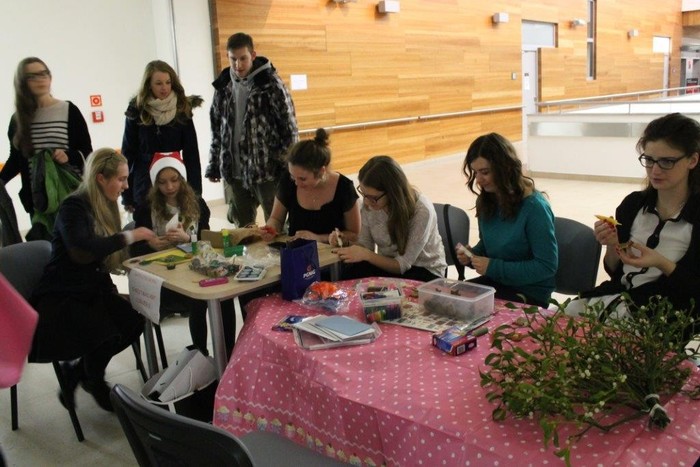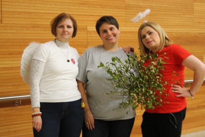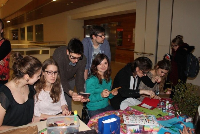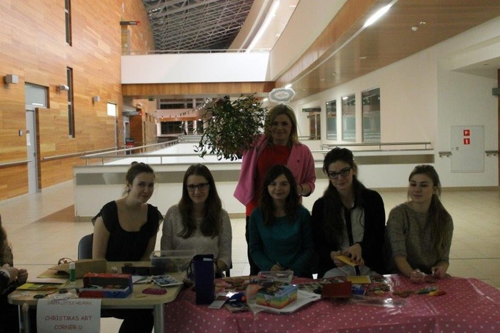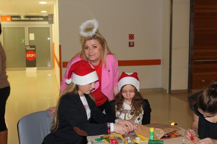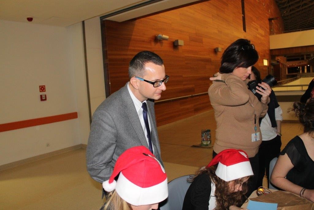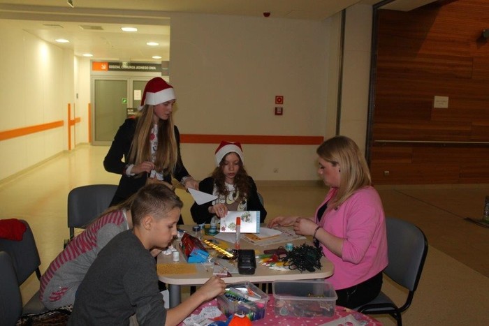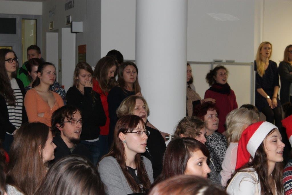 Organizacyjnie Studium Praktycznej Nauki Języków Obcych wsparła Aleksandra Talaśka. Dla przedstawienia skali przedsięwzięcia niech wystarczy fakt, że przygotowane 100 miejsc siedzących okazało się zdecydowanie niewystarczające. To miło, szczególnie, że śpiewali nie tylko studenci i absolwenci, ale też pacjenci i pracownicy. Mgr Magda Warzocha przygotowała pokaz slajdów ze wszystkimi potrzebnymi tekstami, a pieczę nad rzutnikiem przejął Damian z II r. ratownictwa medycznego. W Kąciku Pomocników św. Mikołaja zasiedli studenci II roku analityki medycznej i wolontariusze z gdańskich szkół podstawowych – Julka Standarska, Weronika Kusiak oraz Patricia i Jonathan Kaczmarek.