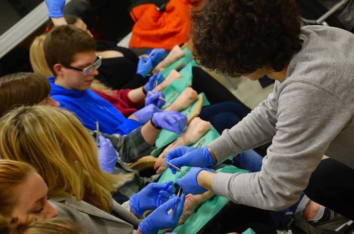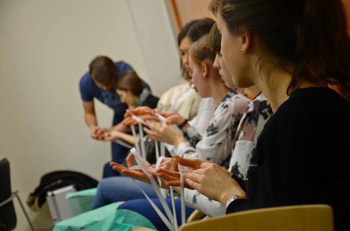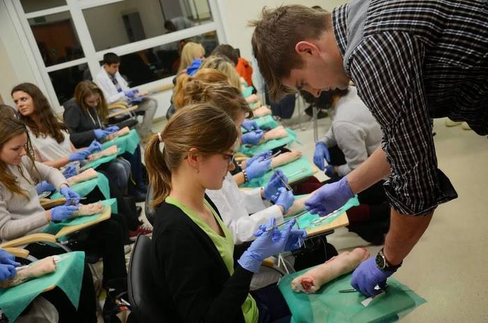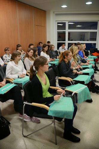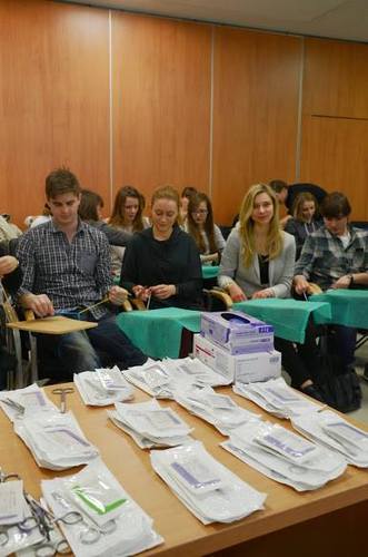 Około 30 osób wzięło udział w kursie szycia chirurgicznego zorganizowanym 30 stycznia br. przez studentów z Koła Naukowego przy Katedrze i Klinice Chirurgii Onkologicznej. Po obejrzeniu prezentacji, uczestnicy spotkania zdobywali wiedzę jak w profesjonalny sposób posługiwać się imadłem, pęsetą i skalpelem. Podczas ćwiczeń wykorzystano modele zwierzęce. Nad poprawnym wykonywaniem czynności czuwali opiekunowie oraz wieloletni członkowie Koła. Akcja cieszyła się wielkim zainteresowaniem. Członkowie SKN mają nadzieję, że w niedalekiej przyszłości uda się zorganizować kolejne spotkanie.