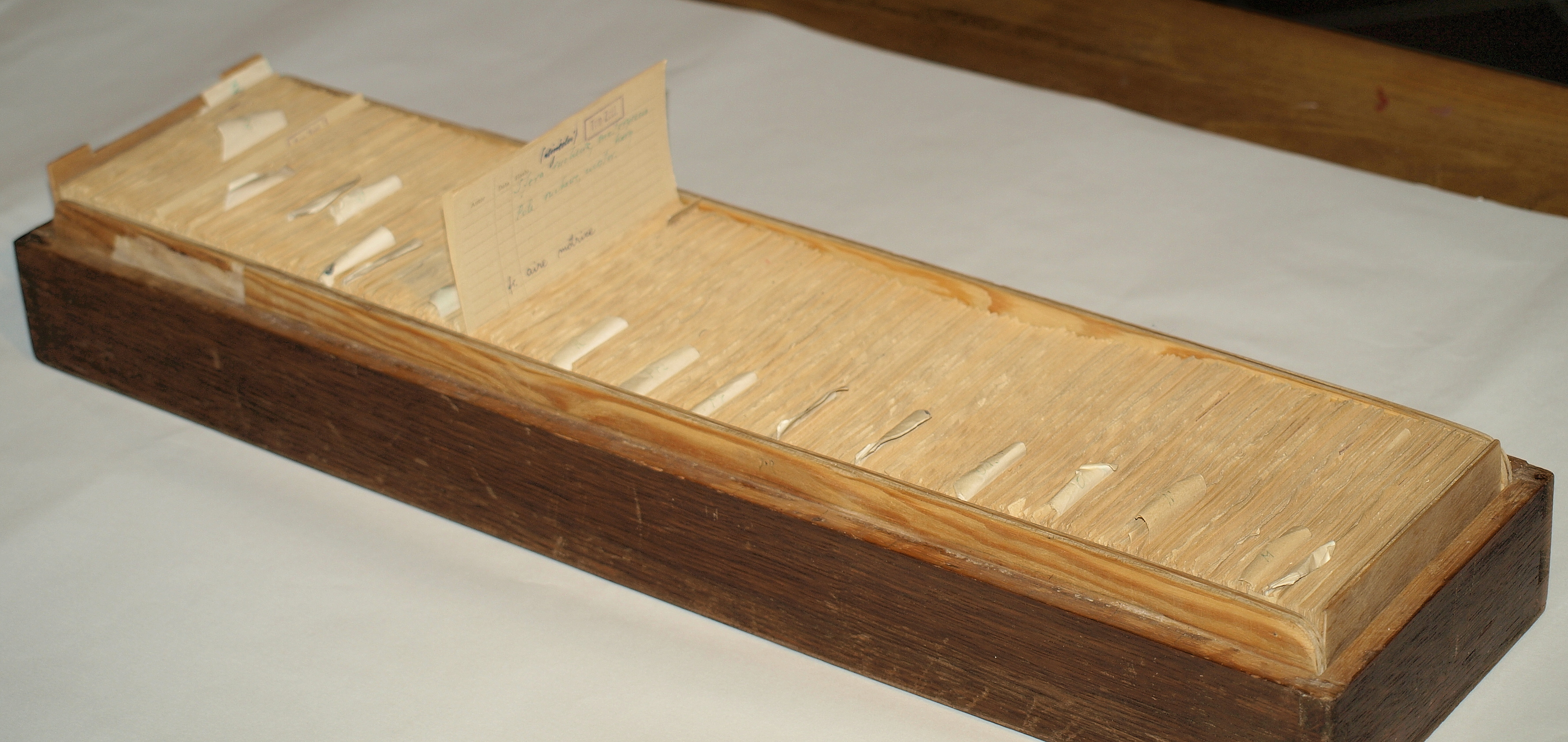 Drewniana skrzynka o wymiarach 63×17 cm zawiera około 2800 fiszek, z hasłami dotyczącymi zagadnień nad którymi pracował prof. Bożydar Szabuniewicz. Posiadał w swej “kolekcji” kilka podobnych zbiorów, a zatem swoista „ręczna baza danych” mogła liczyć kilkanaście lub więcej tysięcy “rekordów”.