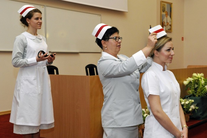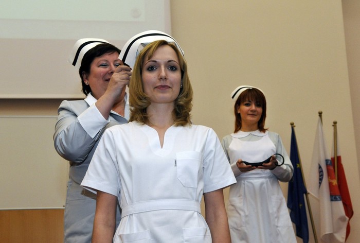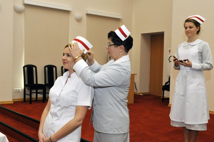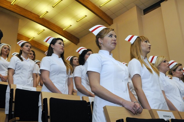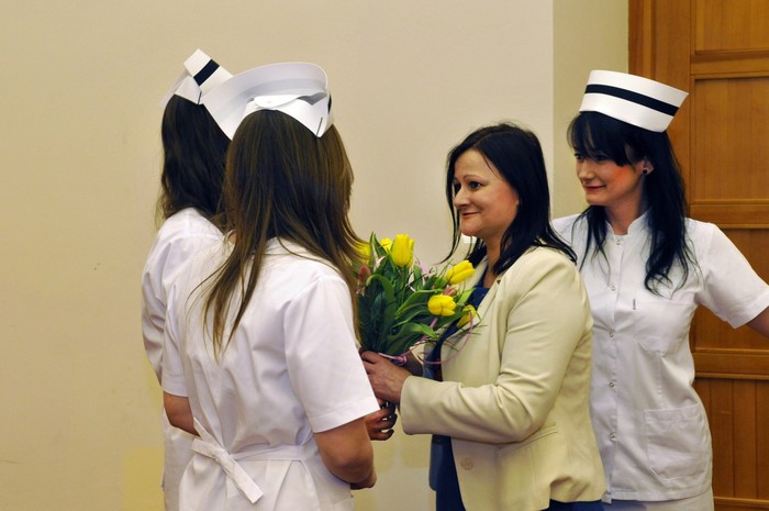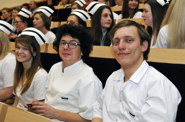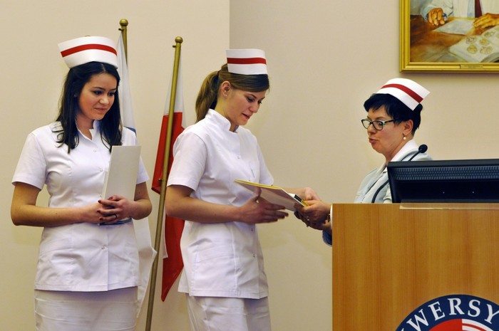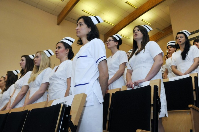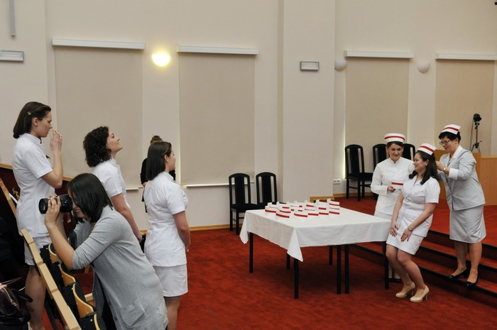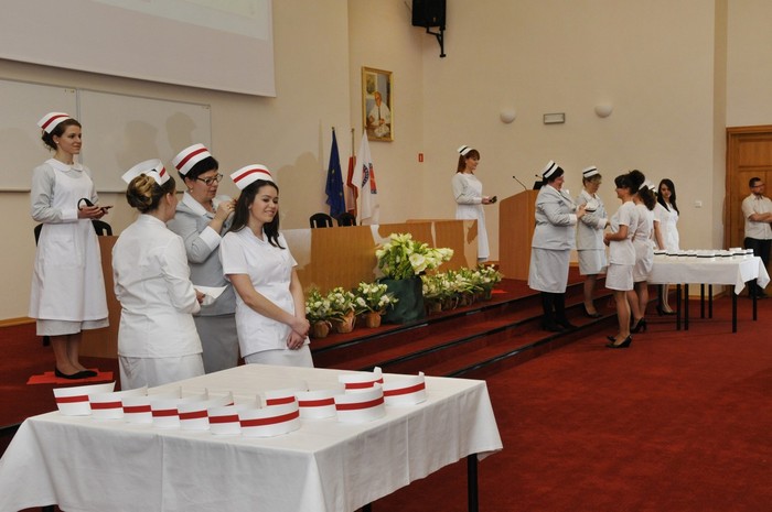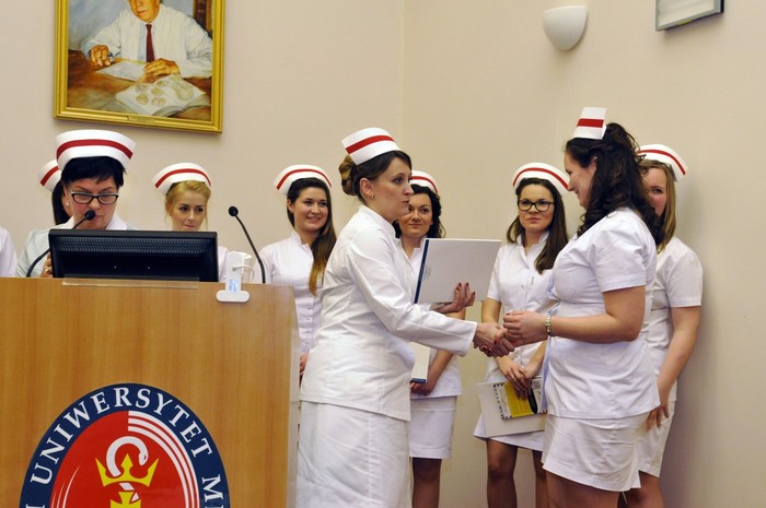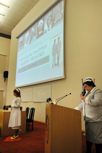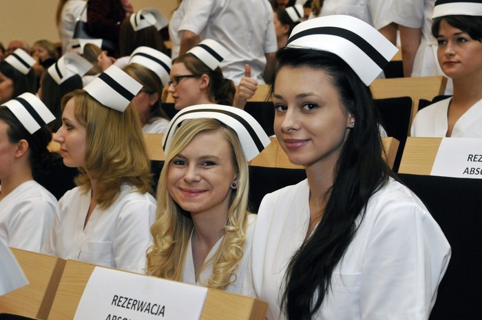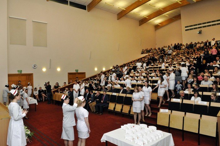Uroczystość otworzyły studentki GUMed, ubrane w tradycyjne stroje, wprowadzając światło – symbol życia powierzanego ich opiece. Drugim symbolicznym elementem uroczystości było Przyrzeczenie, które stanowi wprowadzenie do Kodeksu Etyki Zawodowej Pielęgniarki i Położnej Rzeczpospolitej Polskiej. Studenci powtarzali słowa przysięgi ze wzruszeniem, przyjmując tym samym na swoje barki nadany tytuł zawodowy z “głębokim szacunkiem i czcią”. Uroczystość uświetniło odśpiewanie przez studentki III roku “Hymnu Pielęgniarskiego”. Wiele osób na sali nie potrafiło ukryć ogromnego wzruszenia, które wywołały poruszające słowa.