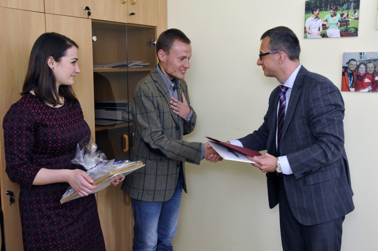 Prof. Marcin Gruchała, prorektor ds. studenckich nagrodził za wybitne osiągnięcia troje studentów GUMed. Wśród wyróżnionych znaleźli się: Anna Szpinda (V r. kierunek lekarsko-dentystyczny) i Przemysław Domagała (II r. studiów II stopnia na kierunku pielęgniarstwo) – laureaci stypendium Ministra Nauki i Szkolnictwa Wyższego oraz Gabrielle Karpinsky (VI r. kierunek English Division), która zwyciężyła w prestiżowym konkursie INTERSTUDENT w kategorii studiów magisterskich. Studenci otrzymali listy gratulacyjne i gdańskie grafiki. Spotkanie odbyło się 20 lutego br. w gabinecie prorektora Gruchały.