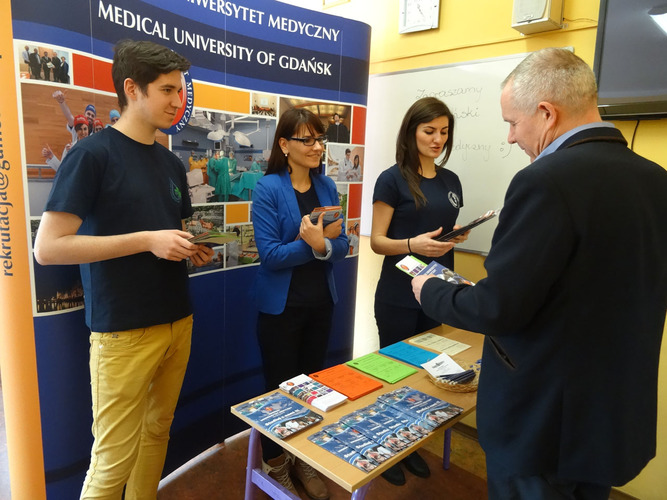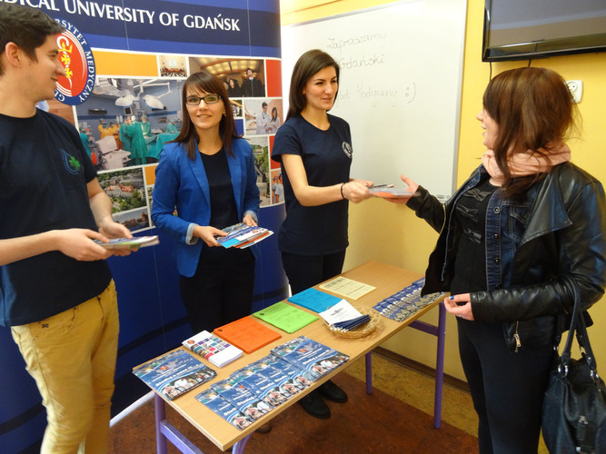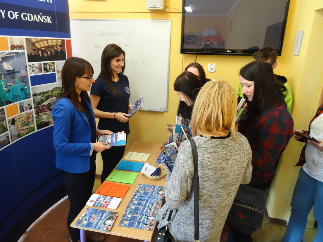 Pracownicy Uczelnianego Centrum Rekrutacji oraz studenci promujący kierunek zdrowie środowiskowe prowadzony na Wydziale Nauk o Zdrowiu uczestniczyli 13 marca br. w Targach Edukacyjnych “Przyszłość 2015” w Bytowie. Podczas targów, które skierowane były głównie do uczniów z powiatu bytowskiego, swoją ofertę prezentowały uczelnie z województw: pomorskiego, kujawsko-pomorskiego i zachodnio-pomorskiego. W trakcie imprezy przyszli studenci mogli zapoznać się z ofertą edukacyjną oraz warunkami rekrutacji i studiowania.