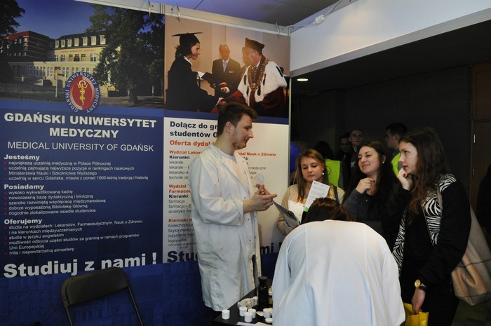 Studenci zachęcali do podejmowania studiów w Gdańskim Uniwersytecie Medycznym opowiadając o samych studiach, ale również opisywali działalność kół naukowych. W czasie Targów studenci Wydziału Farmaceutycznego przygotowywali maści do rąk, które cieszyły się bardzo dużym zainteresowaniem. Chętni mogli również samodzielnie przygotować maść. GUMed przyciągał odwiedzających także płytkami z bakteriami, które zostały przygotowane przez studentów zdrowia środowiskowego. Ponadto osoby odwiedzające Targi Akademia mogły zasięgnąć rad ekspertów z Okręgowej Komisji Egzaminacyjnej z Gdańska oraz zapoznać się ze zmianami w egzaminach maturalnych.
