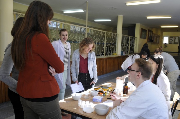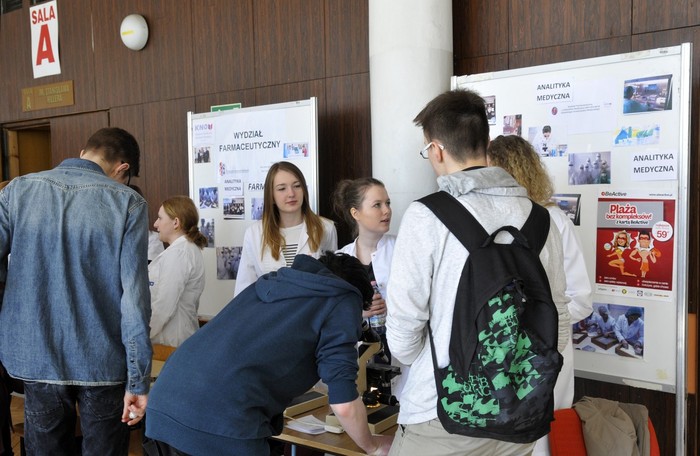 Tego samego dnia dla licealistów został otwarty także Wydział Farmaceutyczny z Oddziałem Medycyny Laboratoryjnej przy ul. Hallera 107. Można było zwiedzić Wydział, uzyskać informacje na temat kierunków farmacja i analityka medyczna oraz poszczególnych katedr. Dzięki przygotowanym stanowiskom chętni mieli okazję spróbować swoich sił w farmaceutycznych zadaniach.