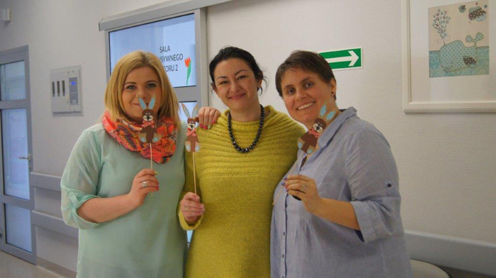 Studium Praktycznej Nauki Języków Obcych zorganizowało kolejne świąteczne spotkanie dla chorych dzieci z Kliniki Kardiologii Dziecięcej i Wad Wrodzonych Serca oraz Nefrologii Dziecięcej. 2 kwietnia br. dzieci dekorowały świąteczne ciasteczka, przepięknie malowały styropianowe jajka oraz kolorowały obrazki, które potem zostały wywieszone jako wystawa na ścianach świetlicy. Jak co roku najlepszą zabawę miały szukając małych, kolorowych pisanek pochowanych w zakamarkach szpitala. Koordynatorem projektu była mgr Magda Warzocha przy ogromnym wsparciu dr Anny Kuciejczyk i mgr Ewy Danisz.