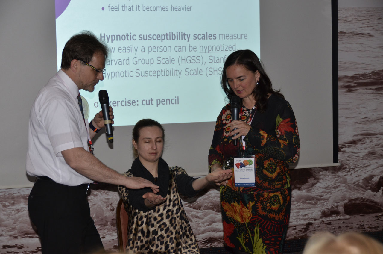 Sobota, 18 kwietnia br., niemal w całości dedykowana była zagadnieniom dotyczącym kontroli zachowań dziecka podczas wizyty u stomatologa. Do grona wykładowców zostali zaproszeni przez organizatorów dr Sabine Rienhoff i dr Jan Rienhoff (Hannover/Niemcy), którzy od lat stosują w swojej praktyce różne techniki relaksacyjne wpływające korzystnie na współpracę z dziećmi. Prelegenci najwięcej czasu w swoich trzech wystąpieniach poświęcili hipnozie ułatwiającej małym pacjentom radzenie sobie z lękiem związanym z leczeniem stomatologicznym. Niecodzienny charakter wykładów nastawionych w dużym stopniu na interakcje z uczestnikami, podczas których mieli oni okazję potrenować prezentowane przez prelegentów techniki, a także obejrzeć liczne filmy video prezentujące pracę Państwa Rienhoff sprawił, że wykłady te na długo pozostaną w pamięci słuchaczy i być może zainspirują ich do dalszego zgłębiania tematu. Mając na uwadze fakt, że hipnoza wciąż budzi sporo kontrowersji wśród lekarzy, wykładowcy przedstawili zarówno argumenty za, jak i przeciw stosowaniu tej metody, zachęcając słuchaczy do zajęcia własnego stanowiska w tej sprawie.