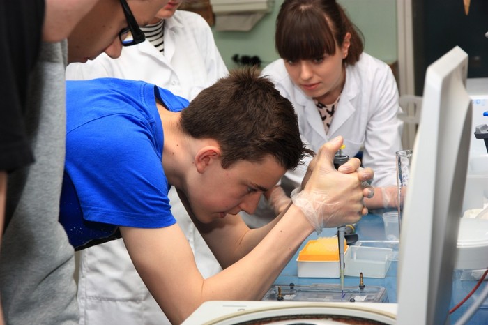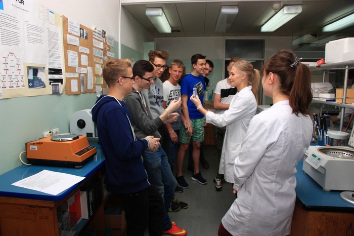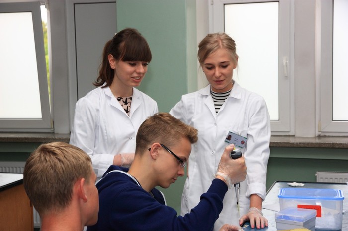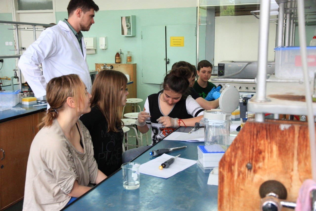 Marta Bartosińska, Klaudia Liszewska i Alan Wronisz, członkowie Studenckiego Koła Naukowego BIOCHEMICY działającego przy Katedrze i Zakładzie Biochemii Farmaceutycznej, zorganizowali 15 maja br. warsztaty genetyczne. Zaprosili na nie młodzież III klasy gimnazjum Gdyńskiej Szkoły Społecznej. W trakcie warsztatów uczniowie zaznajomili się z metodą izolacji i detekcji DNA. Pogłębili tym samym swoją wiedzę biologiczną z dziedziny genetyki. Gimnazjaliści z dużym zainteresowaniem uczestniczyli w spotkaniu i angażowali się w każdy etap doświadczenia, samodzielnie izolowali materiał genetyczny i przeprowadzali elektroforezę agarozową. Była to dla nich cenna praktyczna lekcja. Członkowie Koła, zachęceni świetnym odbiorem u tak młodych ludzi, zamierzają cyklicznie propagować w sposób doświadczalny naukę i zapraszać chętne klasy na pokazy biochemiczne połączone z warsztatami.
