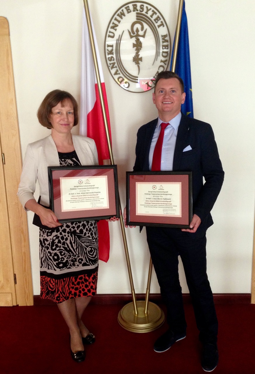 Zarząd Sekcji PTK przyznał dr hab. Alicji Dąbrowskiej-Kugackiej z II Katedry i Kliniki Kardiologii i Elektroterapii oraz dr. hab. Marcinowi Fijałkowskiemu z I Katedry i Kliniki Kardiologii status ekspertów Sekcji Echokardiografii Polskiego Towarzystwa Kardiologicznego. Wyróżnienie to przyznawane jest kardiologom w uznaniu ich szczególnych umiejętności praktycznych oraz osiągnięć naukowych w zakresie echokardiografii. Jednocześnie stają się oni członkami Grupy Ekspertów Systemu Akredytacji Indywidualnej Sekcji Echokardiografii PTK.