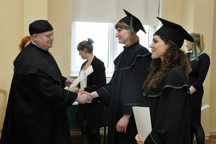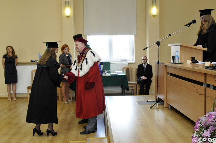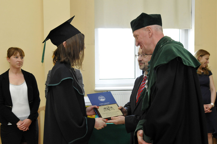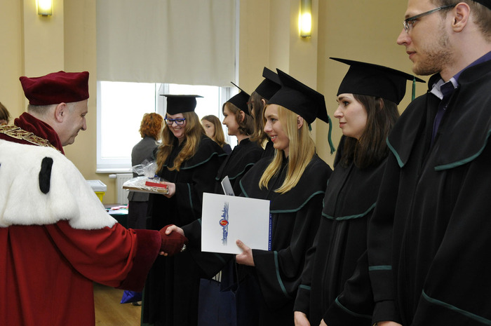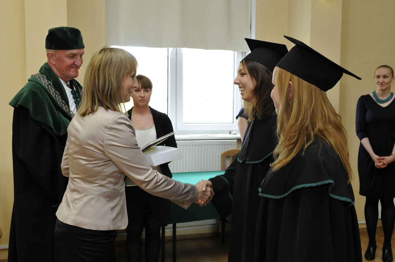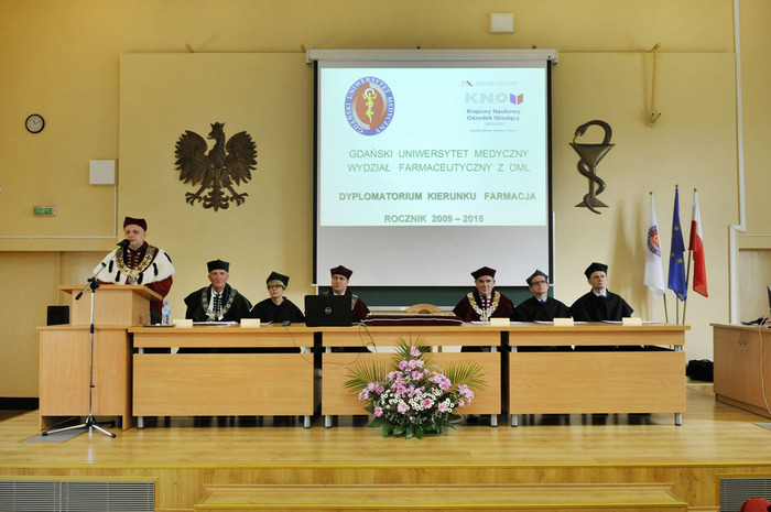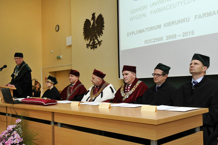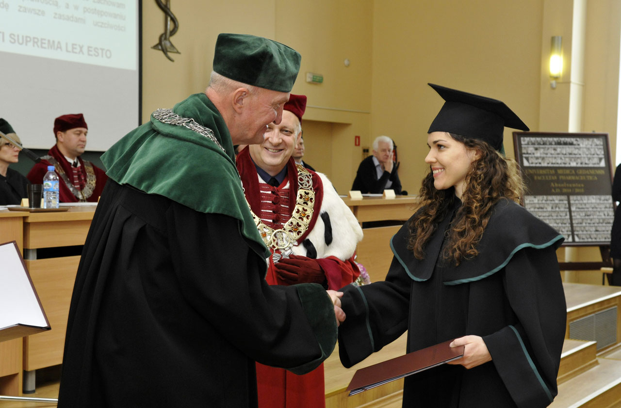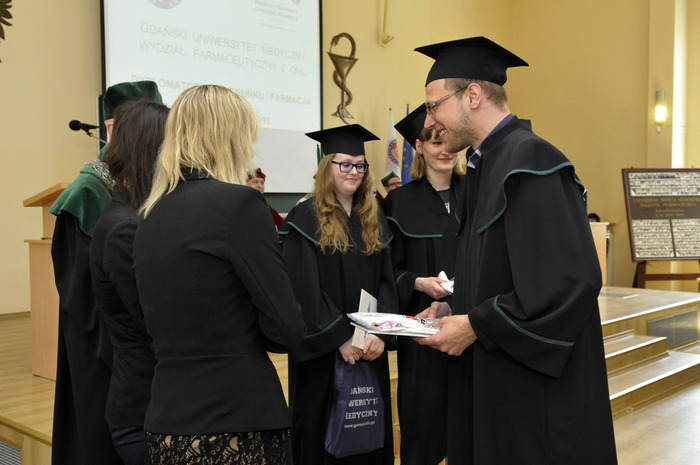 Absolwenci po złożeniu przyrzeczenia odebrali dyplomy z rąk rektora Morysia i dziekana Sawickiego. Wyróżniającym się absolwentom wręczono listy gratulacyjne i ufundowane przez Gdańską Okręgową Izbę Aptekarską nagrody książkowe. Za wyniki w nauce nagrodzono Magdalenę Zienkiewicz – laureatkę medalu Primus Inter Pares, Sylwię Gapę, Agnieszkę Połocką i Natalię Zwiefkę. Ponadto Magdalena Zienkiewicz otrzymała Nagrodę Rektora za szczególne zaangażowanie i aktywną działalność na rzecz społeczności studenckiej Uczelni. Za działalność na rzecz społeczności akademickiej wyróżnieni zostali również: Małgorzata Czubaszek, Adrian Kamola i Małgorzata Patejko.