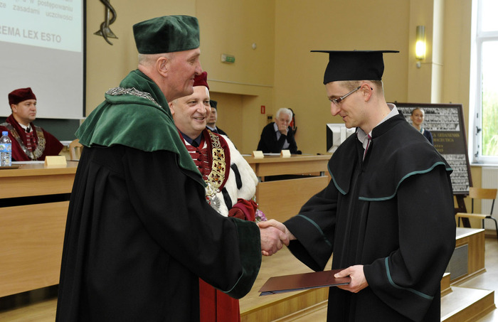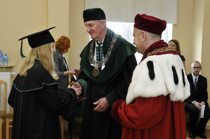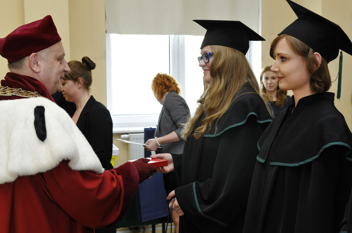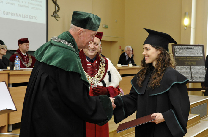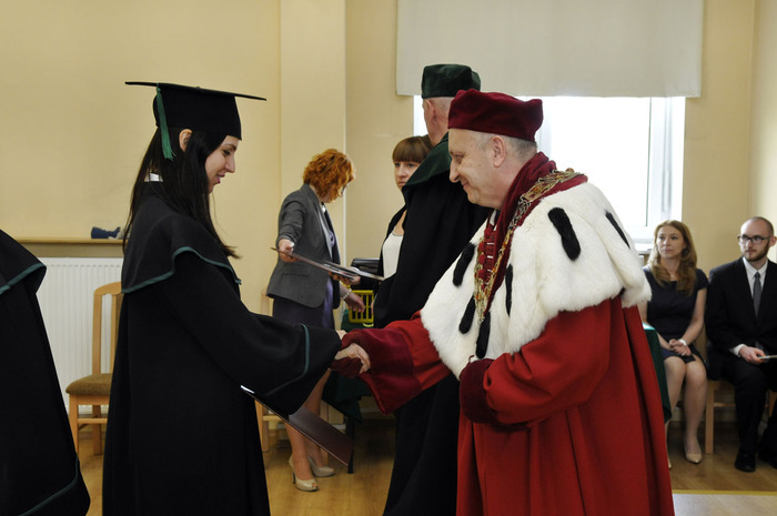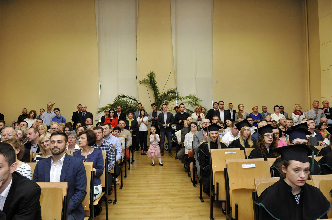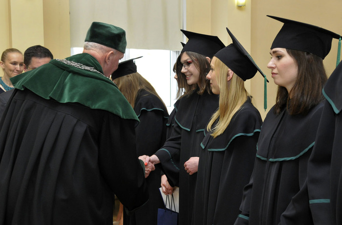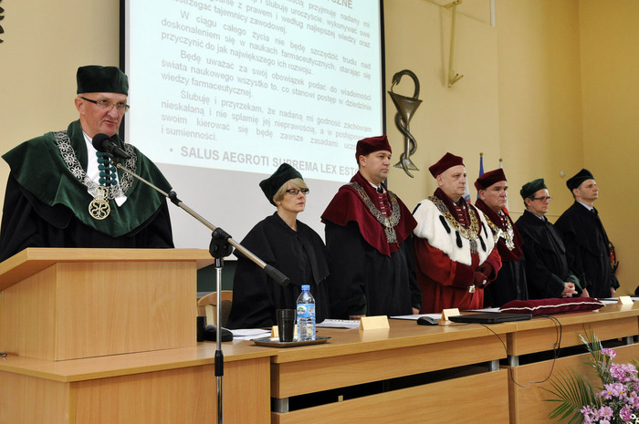Stu jedenastu magistrów farmacji rocznika 2009-2015 odebrało swoje dyplomy. Dyplomatorium odbyło się 22 maja br. w Auditorium Maximum Wydziału Farmaceutycznego z Oddziałem Medycyny Laboratoryjnej. W uroczystości, której przewodniczył dziekan Wydziału Farmaceutycznego z OML prof. Wiesław Sawicki, udział wzięli: rektor prof. Janusz Moryś, prorektor ds. nauki prof. Tomasz Bączek, prorektor ds. rozwoju i organizacji kształcenia prof. Leszek Bieniaszewski, prodziekani – prof. Michał Markuszewski, prof. Maciej Jankowski i dr hab. Anita Kornicka, członkowie Senatu, Rady Wydziału oraz zaproszeni goście i rodziny absolwentów.