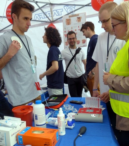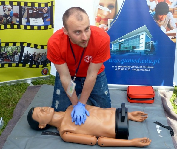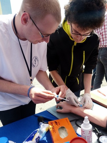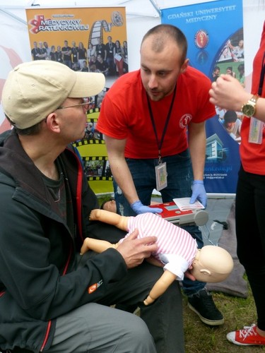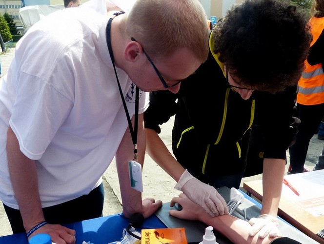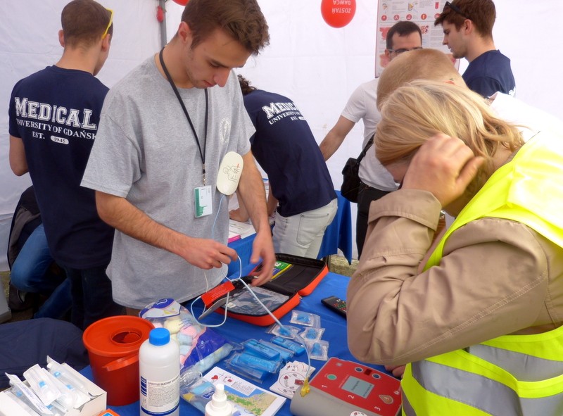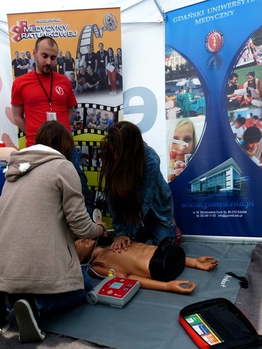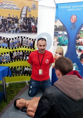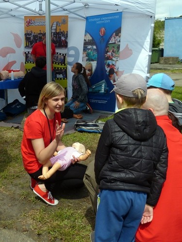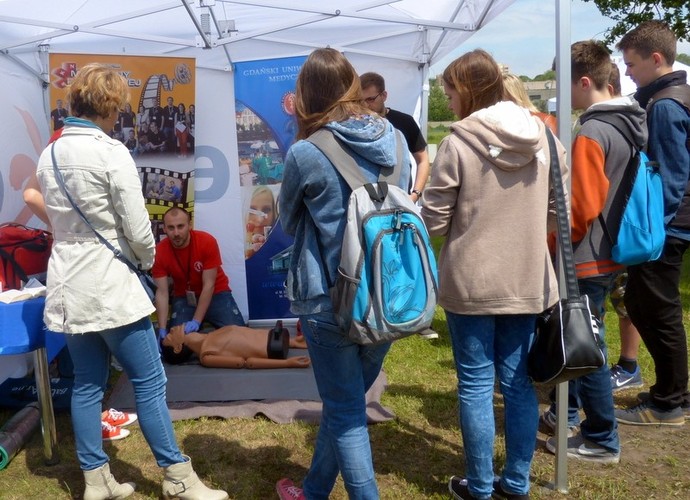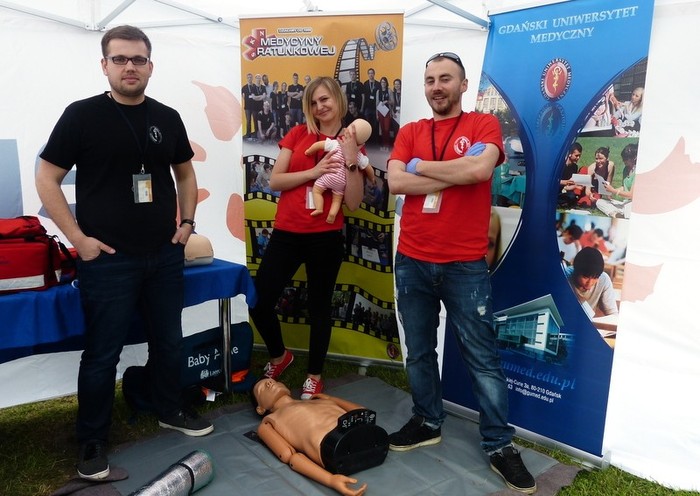 Mimo niekorzystnej aury członkowie 3 kół naukowych Gdańskiego Uniwersytetu Medycznego 30 maja br. wzięli udział w Dniu otwartym elektrociepłowni w Gdyni. Uczelnię reprezentowali studenci z SKN Medycyny Ratunkowej, SKN przy Katedrze i Klinice Anestezjologii i Intensywnej Terapii i SKN przy Katedrze i Klinice Urologii. Podczas imprezy uczestnicy mogli uzyskać podstawowe informacje na temat nowotworów takich jak rak prostaty czy rak jąder, jak również sprawdzić jak działają narzędzia używane w diagnostyce i leczeniu chorób układu moczowego. Nie zabrakło nauki udzielania pierwszej pomocy z wykorzystaniem AED, prezentacji sprzętu używanego w medycynie ratunkowej oraz ćwiczeń na specjalnym manekinie polegających na założeniu wenflonu do żyły.