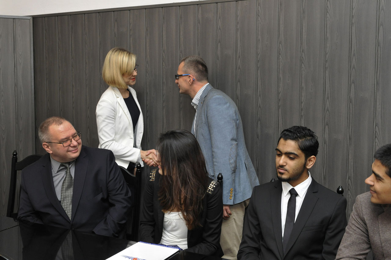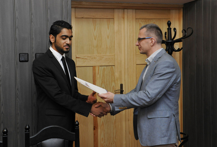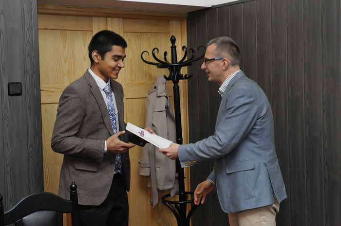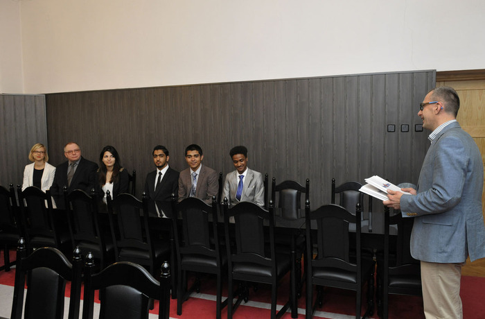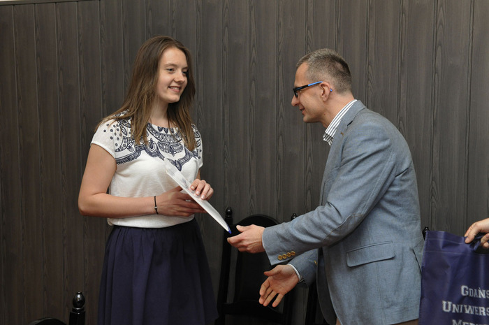 Studenci I roku kierunku lekarskiego polskojęzycznego i I roku kierunku lekarskiego anglojęzycznego (ED), którzy reprezentowali Uczelnię w Międzyuczelnianym Konkursie Wiedzy Anatomicznej “Scapula Aurea” w Bydgoszczy spotkali się 18 czerwca br. z prorektorem ds. studenckich prof. Marcinem Gruchałą. Przedstawiciele GUMed-u zdobyli w tym konkursie aż 4 nagrody. W kategorii studentów anglojęzycznych 2 miejsce zdobyła Rani Gill, zaś w kategorii studentów polskojęzycznych na 3 miejscu uplasowała się Patrycja Pyra. W kategorii zespołowej drużyna ED w składzie: Rani Gill, Aamir Hasan, Mousa Alnakhli i Abdullah Almahroos zdobyła miejsce 2, zaś drużyna polska w składzie: Patrycja Pyra, Aleksandra Sugier, Zofia Lasocka i Aleksandra Kuszczak – miejsce 3.