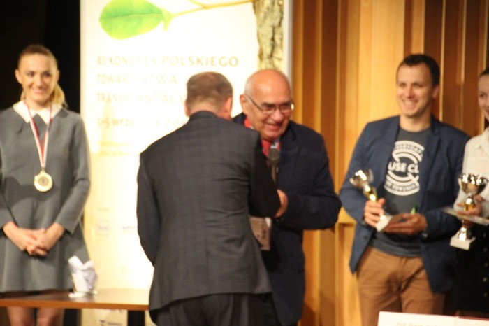 Nie zabrakło także sesji poświęconym problemom związanym z przeszczepianiem poszczególnych narządów. Chętni mieli możliwość zaprezentowania własnych wyników podczas prezentacji ustnych bądź też sesji plakatowej. Pośród prezentacji ustnych zakwalifikowanych na podstawie dokonanej przez niezależnych ekspertów oceny cztery z osiemnastu pochodziło z ośrodka gdańskiego. Ogółem zaprezentowano ponad 300 plakatów. Dwadzieścia siedem z nich zostało przygotowanych przez zespół gdański. Dodatkowo jedna z sesji plenarnych zatytułowana “Przeszczepianie w obiektywie” dała możliwość pokazania filmów nakręcanych podczas przeszczepiania różnych narządów. Wszystkie sesje cieszyły się ogromnym zainteresowaniem, a w wielu z nich zaplanowano dyskusje ekspertów, które nadały im żywy, wartki i ciekawy przebieg. Uwagę wielu uczestników przyciągnęła sesja immunologiczna, co świadczy o dużym zainteresowaniu tą problematyką w środowisku transplantacyjnym. Podczas uroczystej ceremonii otwarcia Kongresu wręczono dyplomy Honorowego Członka PTT. Nagrodzono osoby wyróżnione nagrodą ProTransplantonibus Fovendis, a także przyznano dyplomy Zasłużony dla Polskiej Transplantologii. Wręczono również przyznane przez Kapitułę trzy granty Polskiego Towarzystwa Transplantacyjnego w wysokości 25 tys. zł przeznaczone na prowadzenie przez młodych badaczy badań z zakresu transplantologii. Pierwsze miejsce w rankingu kandydatów do otrzymania grantu uzyskała reprezentująca zespół gdański dr Justyna Gołębiewska za projekt „Określenie czynników wpływających na właściwości biofilmu Klebsiella pneumoniae u chorych po przeszczepieniu nerki”. Wśród gości uczestniczących w otwarciu Kongresu nie zabrakło reprezentantów GUMed. Był rektor prof. Janusz Moryś, który wraz z Marszałkiem Województwa Pomorskiego był patronem przedsięwzięcia. Wśród uczestników byli także reprezentanci dyrekcji Uniwersyteckiego Centrum Klinicznego: mgr Ewa Książek-Bator, dyrektor naczelna oraz zastępca dyrektora ds. klinicznych dr hab. Tomasz Stefaniak. Oprócz czołówki środowiska transplantacyjnego z Polski nie zabrało także gości zagranicznych. Była wśród nich profesor Sahron Hunt, znakomity kardiolog ze Szkoły Medycznej Uniwersytetu w Stanford w USA, który uważany jest za światową stolicę przeszczepiania serca. Kolejnymi gośćmi byli dr Teresa Rampino oraz prof. Antonio DalCanton – nefrolodzy z Uniwersytetu w Pawii we Włoszech, a także wywodzący się z Wrocławia doc. Wojciech Polak, obecnie reprezentujący ośrodek transplantacyjny w Uniwersytecie w Rotterdamie. Zaproszeni goście wygłosili wykłady, dzieląc się swoją wiedzą i doświadczeniem z polskimi kolegami. Poza możliwością prezentacji swoich osiągnięć i pogłębienia wiedzy w zakresie przeszczepiania uczestnicy Kongresu mieli okazję podziwiać piękno gdańskiej Starówki. Wszyscy goście otrzymali także zaproszenia do odwiedzenia Europejskiego Centrum Solidarności (ECS), a także do odbycia wycieczki na Westerplatte. Po ceremonii otwarcia wszyscy mieli okazję wysłuchać koncertu znakomitego zespołu Delivers, natomiast następnego dnia koncertu Stanisława Sojki. Najbardziej wytrzymali uczestnicy mieli także możliwość wieczornej aktywnej rekreacji w Klubie “Parlament”. Kongres był także okazją do zwołania Walnego Zebrania Członków PTT, na którym absolutorium uzyskał Zarząd pod przewodnictwem prof. Bolesława Rutkowskiego. Wybrano jednocześnie nowe władze Towarzystwa. W nowym Zarządzie Głównym poza pełniącym funkcję past prezesa prof. Bolesława Rutkowskiego ważną funkcję sekretarza generalnego będzie pełnić prof. Alicja Dębska-Ślizień. Jest to niewątpliwie duże wyróżnienie dla gdańskiego środowiska transplantacyjnego.