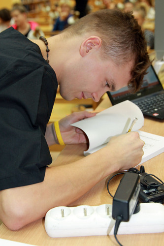 Kilkadziesiąt osób uczestniczyło w spotkaniu z Danielem Kasprowiczem, autorem książki “Kilasymandry. Jak Madagaskar nauczył mnie kochać”, które odbyło się 23 października br. w Bibliotece Głównej. Absolwent dietetyki GUMed opowiadał m.in. o codziennym życiu na Czerwonej Wyspie, o swoich przeżyciach, przyjaźniach i o tym czego sam nauczył się od Malgaszy. Przybliżył słuchaczom specyfikę tamtejszej opieki medycznej, swojej pracy z chorymi na trąd i malarię oraz podopiecznymi Domu Dziecka. Podczas spotkania odbyła się również licytacja 12 zdjęć autorstwa Daniela Kasprowicza. Całkowity dochód z sprzedaży książek i fotografii zostanie przekazany na potrzeby młodych wychowanków internatu w Mampikony.