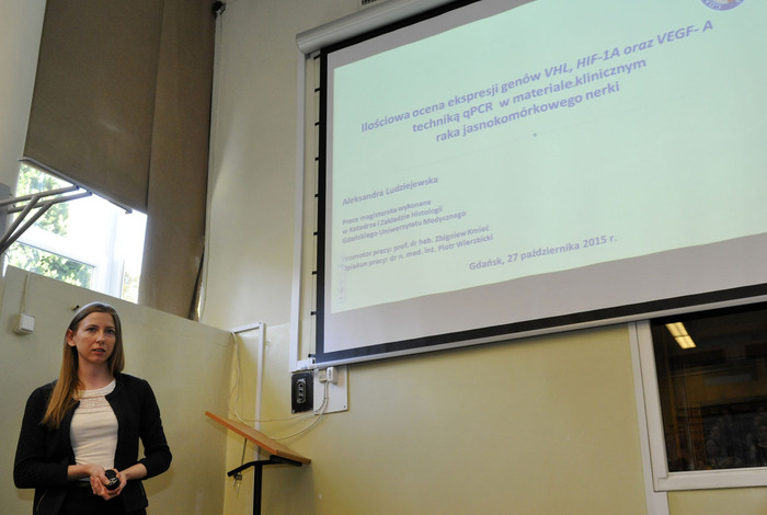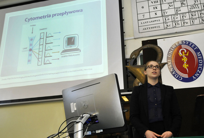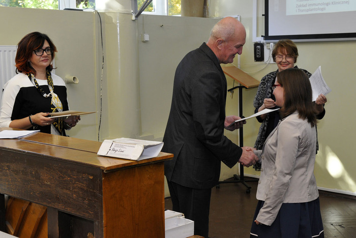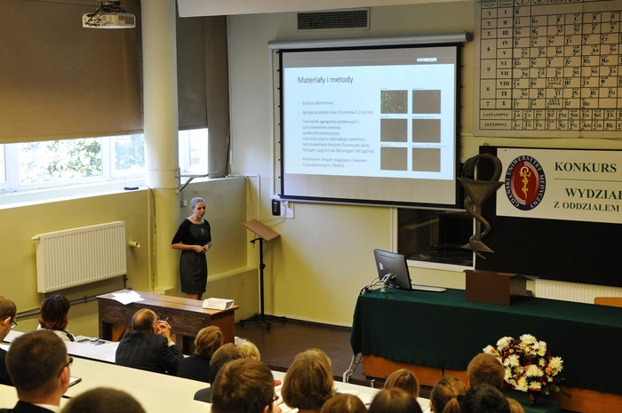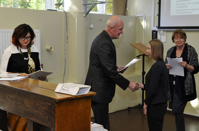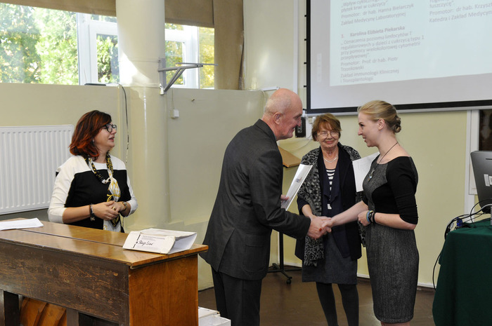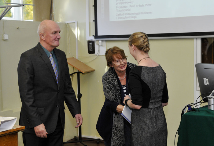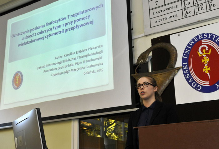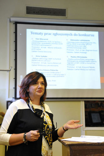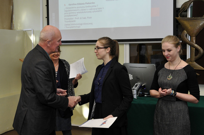 Anna Szyłejko zwyciężyła w konkursie prac magisterskich na Oddziale Medycyny Laboratoryjnej, który odbył się 27 października br. Nagrodzona praca pt. “Wpływ cyklicznego AMP na funkcje płytek krwi w cukrzycy” została wykonana w Zakładzie Medycyny Laboratoryjnej pod kierunkiem dr Anny Michno i dr hab. Hanny Bielarczyk. Drugie miejsce zajęła Ewa Wieczorek za pracę pt. “Ocena podatności VLDL na lipolizę u pacjentów z przewlekłą choroba nerek leczonych zachowawczo”, wykonaną w Zakładzie Chemii Klinicznej pod kierunkiem dr Agnieszki Ćwiklińskiej i prof. Macieja Jankowskiego. Trzecie miejsce przypadło Karolinie Piekarskiej, która pod opieką prof. Piotra Trzonkowskiego z Zakładu Immunologii Klinicznej i Transplantologii wykonała pracę “Oznaczenia poziomu limfocytów T regulatorowych u dzieci z cukrzycą typu 1 przy pomocy wielokolorowej cytometrii przepływowej”. Karolina Piekarska została również laureatką Nagrody Publiczności ufundowanej przez studencką organizację Forum Analityków Medycznych.