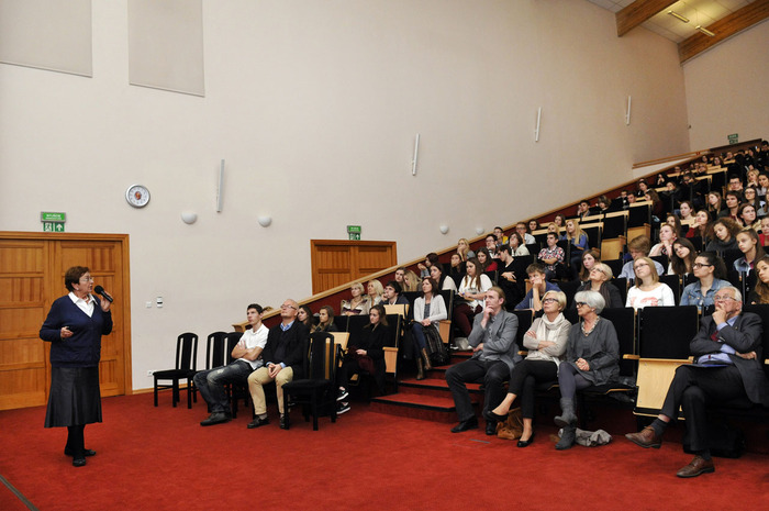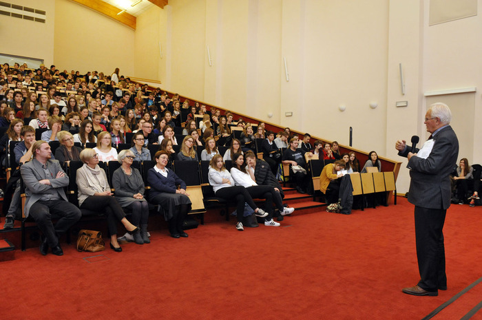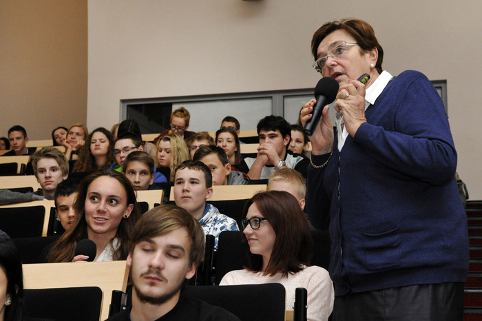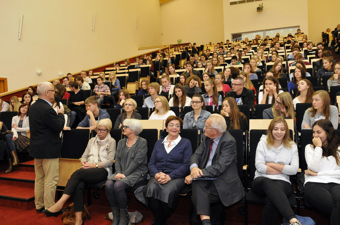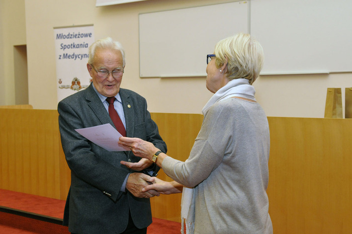 Michał Prusiński, uczeń I ALO w Gdyni wykładem poświęconym chorobie Hashimoto rozpoczął październikowe Młodzieżowe Spotkania z Medycyną. Prezentację zatytułowaną “Wileńskie korzenie Gdańskiego Uniwersytetu Medycznego” wygłosił prof. Wiesław Makarewicz, były rektor AMG, natomiast prof. Barbara Kamińska z Katedry i Kliniki Pediatrii, Gastroenterologii, Hepatologii i Żywienia Dzieci opowiedziała o jedzeniu nie tylko w sklepikach szkolnych.