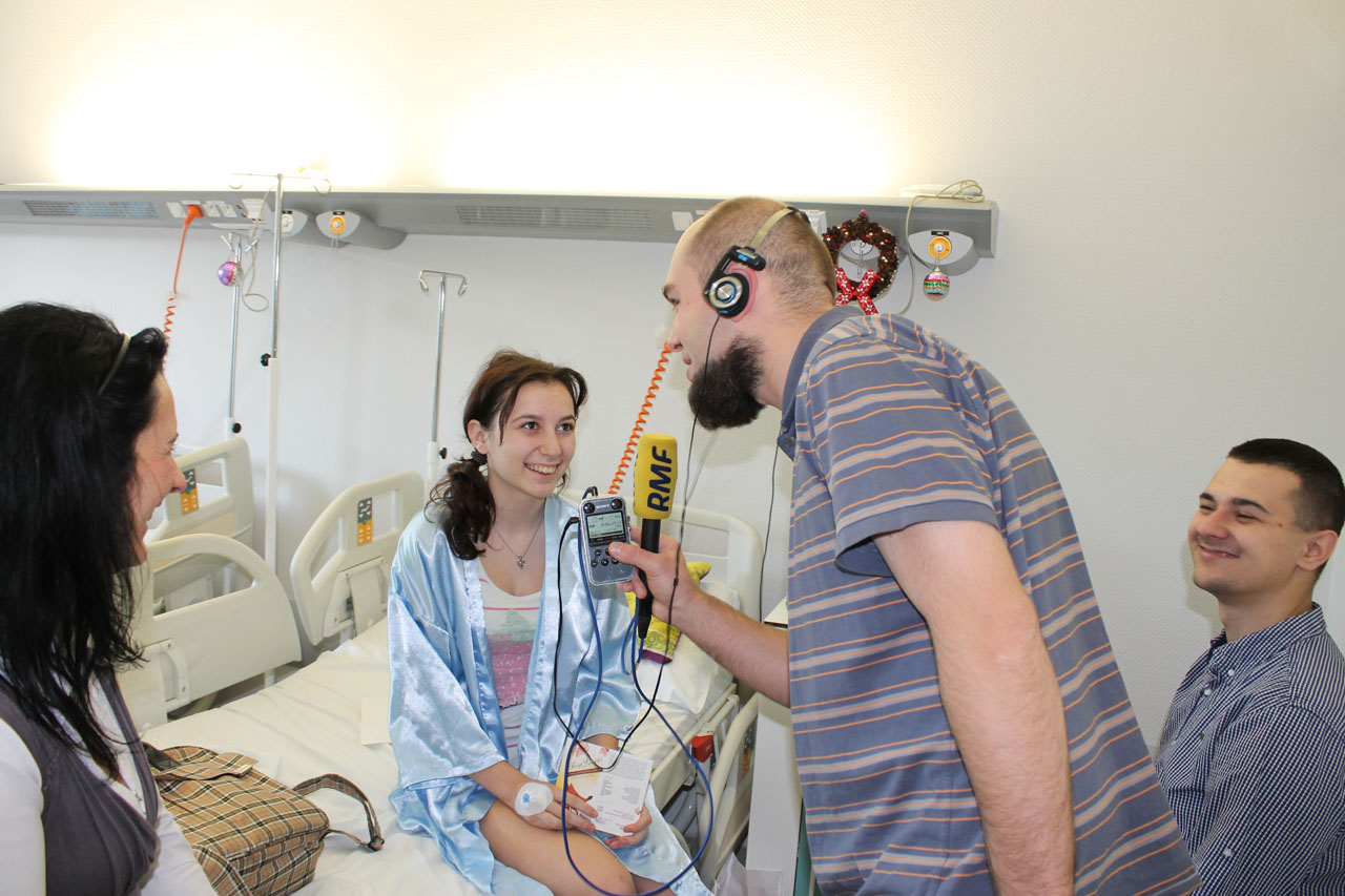 Z okazji mikołajkowego święta pracownicy Studium Praktycznej Nauki Języków Obcych we współpracy z radiem RMF FM po raz kolejny odwiedzili małych pacjentów Kliniki Nefrologii Dziecięcej oraz Kliniki Kardiologii Dziecięcej i Wad Wrodzonych Serca. Dziennikarz radia RMF FM Kuba Kaługa obdarował pacjentów najnowszymi audiobookami z bajkami, a od pracowników Studium dzieci otrzymały świąteczne słodycze. Dodatkową atrakcją były wywiady, w których dzieci przedstawiały swoje plany na przyszłość. Świąteczna atmosfera, która tego dnia niewątpliwie zagościła w Klinikach, wywołała uśmiech i radość u małych pacjentów oraz ich rodziców. W akcji udział wzięli: kierownik Studium dr Beata Cygan, dr Anna Kuciejczyk, mgr Magda Warzocha oraz mgr Barbara Mrozik.