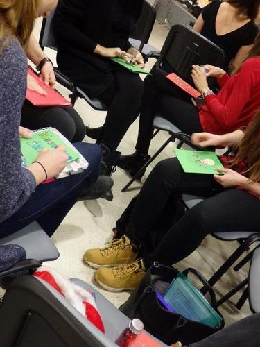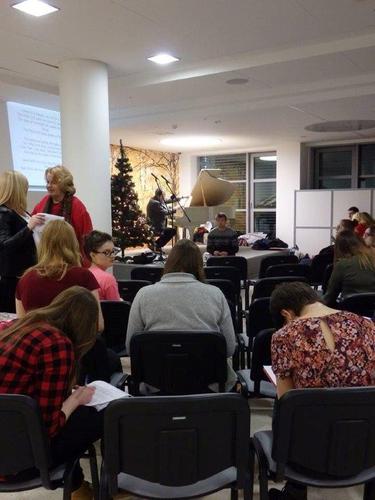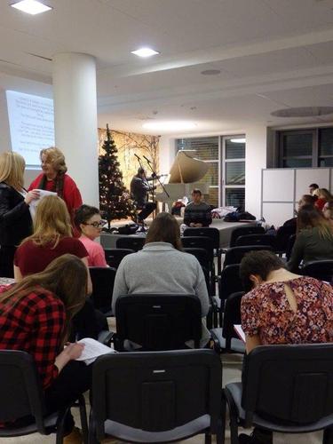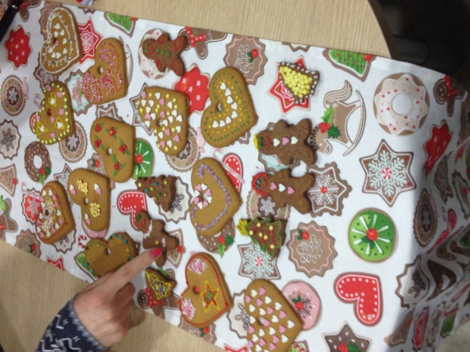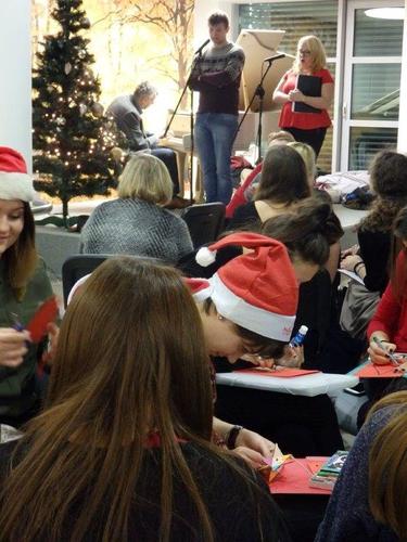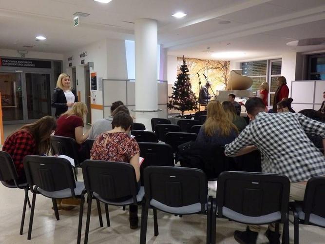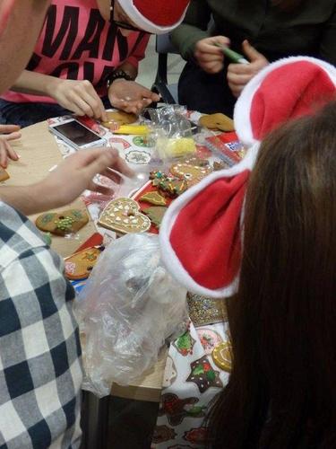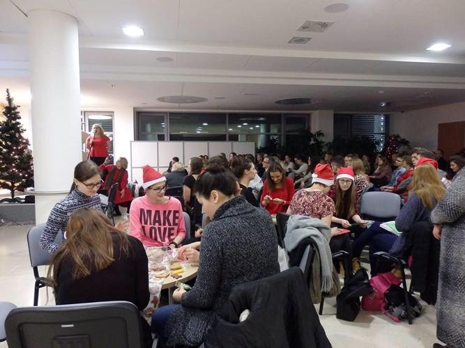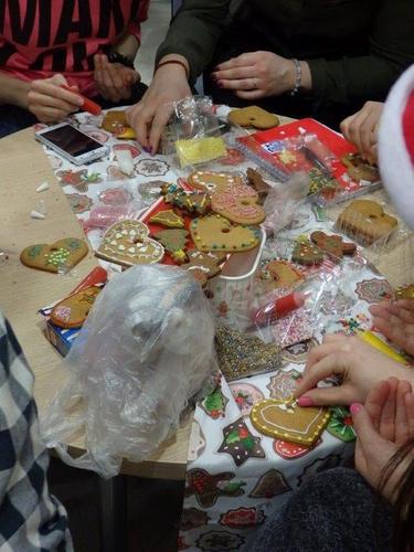 Teksty przygotowane i ozdobione przez mgr Magdę Warzochę ułatwiały zadanie, a jej studenci II roku zdrowia środowiskowego i publicznego uprzyjemniali atmosferę, dekorując pierniczki upieczone przez Barbarę Mrozik oraz przygotowując kartki świąteczne.