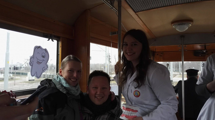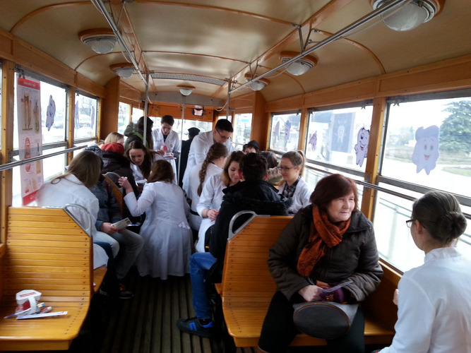 Podczas darmowych przejazdów zabytkowym tramwajem z 1952 r. członkowie SKN Stomatologii Zachowawczej GUMed i Polskiego Towarzystwa Studentów Stomatologii Oddział Gdańsk pokazywali pasażerom jak szczotkować zęby oraz zachęcali do regularnych wizyt u stomatologa. Akcja odbyła się 5 marca br. Została zorganizowana z okazji ogólnopolskiego Dnia Dentysty.