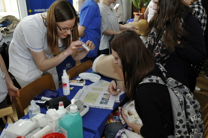 Chętni mogli spróbować swoich sił w szyciu chirurgicznym, wykonywaniu wkłuć na fantomie oraz badaniu piersi w celu wykrycia guzów. Ponadto mogli poznać zasady zdrowego odżywiania się oraz posłuchać tętna płodu. Duże zainteresowanie budziły także pokazy udzielania pierwszej pomocy prowadzone przez studentów ratownictwa medycznego.
