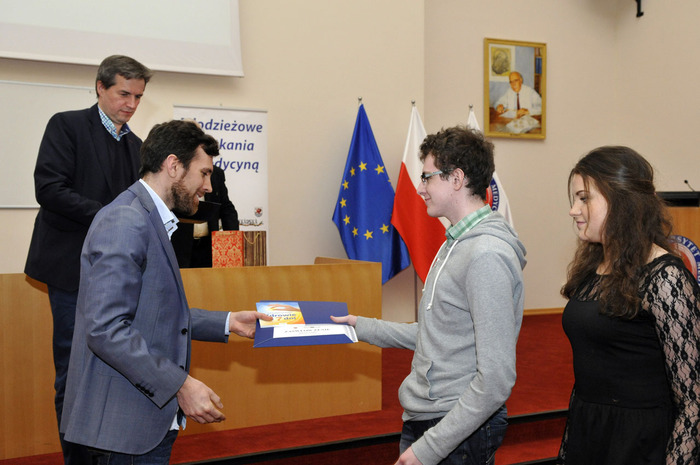 Podczas kwietniowych Młodzieżowych Spotkań z Medycyną swoje prezentacje wygłosili specjaliści z Kliniki Kardiochirurgii i Chirurgii Naczyniowej. Lek. Radosław Kozaryn przedstawił perspektywy w kardiochirurgii, a dr hab. Rafał Pawlaczyk wygłosił wykład pt. „Sala operacyjna: serce nie bije, a pacjent żywy”. Natomiast o witaminowych celebrytkach – witaminie C i D opowiedzieli: Magdalena Engler i Adrian Engler, uczniowie VI LO w Gdyni. Młodzieżowe Spotkania z Medycyną odbyły się 26 kwietnia br. w Atheneum Gedanense Novum.