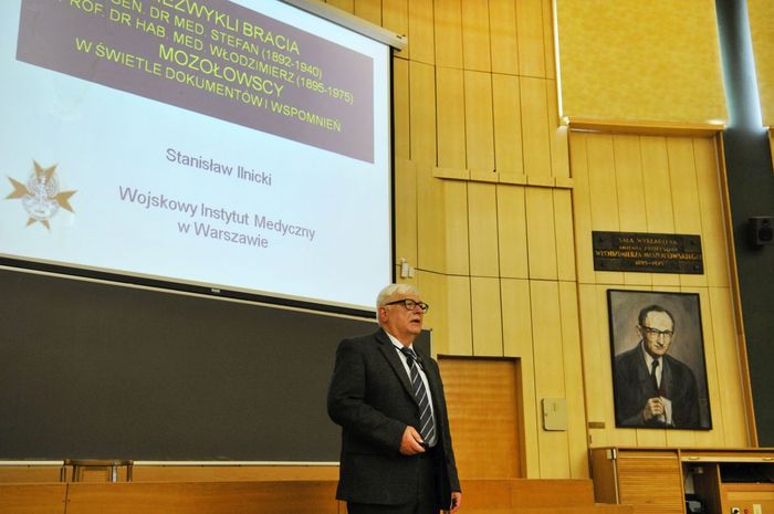 Jak wielka jest siła pamięci i przechowywanych przez nią wspomnień, o znaczeniu tradycji i historycznego przekazu pokazał wygłoszony 28 kwietnia br. wykład prof. Stanisława Ilnickiego z Wojskowego Instytutu Medycznego pod tytułem „Niezwykli bracia gen. dr med. Stefan Mozołowski (1892-1940) i prof. dr hab. med. Włodzimierz Mozołowski (1895-1975) w świetle rodzinnych dokumentów, wspomnień i korespondencji”. W tej krótkiej, zaledwie godzinnej opowieści jak w soczewce zostały skupione tradycje wileńskie naszego Uniwersytetu, powojenne lata tworzenia i rozwoju uniwersyteckiego nauczania medycyny w Gdańsku, a przede wszystkim biografie Stefana i Włodzimierza Mozołowskich. Prof. Stanisław Ilnicki przedstawił unikalne pamiątki związane z dzieciństwem, karierą wojskową, medyczną i życiem rodzinnym braci Mozołowskich oraz ich najbliższych. Szczególnie interesujące było przedstawienie mniej znanej naszej społeczności postaci gen. dr. med. Stefana Mozołowskiego – żołnierza, doktora medycyny, neurologa i lekarza przybocznego marszałka Józefa Piłsudzkiego, zamordowanego przez NKWD w kwietniu 1940 r. w Charkowie. Prof. Włodzimierz Mozołowski, tak dobrze znany, ukazany został z innej niż gdańska perspektywy, dzięki czemu wspomnienie jego postaci stało się pełniejsze i barwniejsze. Niektóre z anegdot związanych z Profesorem, przypomniane w audytorium jego imienia, pozwoliły raz jeszcze wrócić do najnowszej historii GUMed. Po zakończeniu wykładu wybrzmiały rzęsiste oklaski, a słuchacze podzieli się wspomnieniami związanymi z prof. Włodzimierzem Mozołowskim i wileńskimi korzeniami.