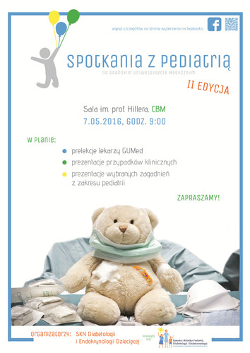 Po raz drugi w Gdańskim Uniwersytecie Medycznym odbyły się “Spotkania z Pediatrią”. To unikalny cykl wydarzeń zorganizowanych przez Studenckie Koło Naukowe przy Klinice Diabetologii i Endokrynologii Dziecięcej z pomocą Studenckiego Koła Chorób Zakaźnych. Jego celem jest wymiana doświadczeń między członkami różnych kół, jak również dzielenie się tą wiedzą z innymi studentami. Druga edycja odbyła się 7 maja br. i obfitowała różnorodnością zagadnień. Ogromnym zainteresowaniem cieszyło się wystąpienie dr. Tomasza Szmudy z Kliniki Neurochirurgii. Ponownie zostały poruszone tematy ważne dla przyszłych pediatrów: od problemów okulistycznych u najmłodszych, przez zaburzenia nastroju, problemy stomatologiczne, zagrażające życiu zapalenia opon mózgowo-rdzeniowych po wiele innych ciekawych zagadnień. Wśród prelekcji znalazły się tradycyjnie przypadki kliniczne prezentowane przez SKN Pediatrii przy Klinice Hematologii i Onkologii Dziecięcej, SKN Otolaryngologii i SKN przy Klinice Diabetologii i Endokrynologii Dziecięcej. Studenci ze wszystkich kół włożyli ogrom pracy w przygotowanie wystąpień na profesjonalnym poziomie. Rok akademicki zbliża się ku końcowi, to jednak nie jest to pożegnanie z pediatrią – nowy, jesienny cykl spotkań jest już planowany.