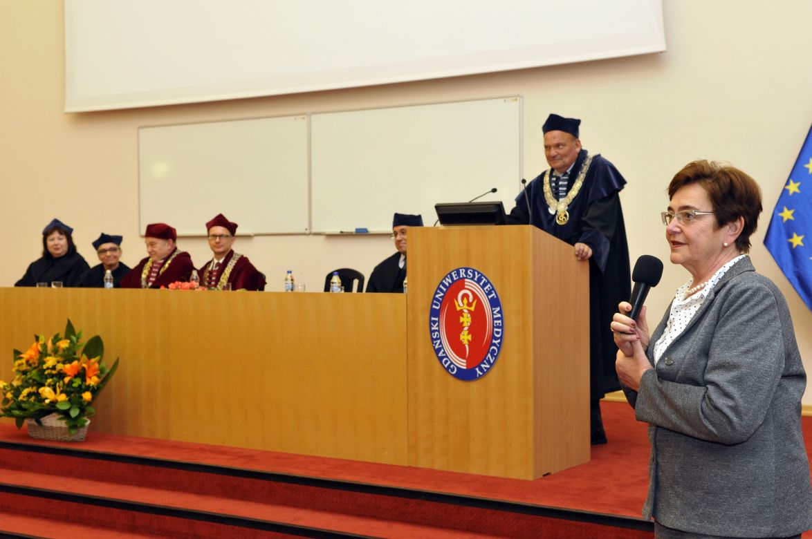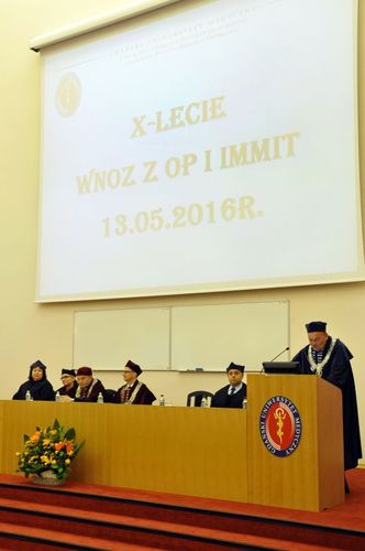 Jubileuszowe otwarte posiedzenie Rady Wydziału Nauk o Zdrowiu z Oddziałem Pielęgniarstwa i Instytutem Medycyny Morskiej i Tropikalnej odbyło się 13 maja 2016 r. w sali wykładowej im. prof. O. Narkiewicza AGN. Poprowadził je dziekan WNoZ prof. Piotr Lass. Za stołem prezydialnym zasiedli: prof. Marcin Gruchała, prorektor ds. studenckich, rektor elekt, prof. Andrzej Basiński, prorektor ds. klinicznych, dziekan elekt, prodziekani WNoZ – dr hab. Jacek Sein Anand, dr hab. Sylwia Małgorzewicz, prof. nadwz., dr Rita Hansdorfer-Korzon, dr Janina Książek – kierownik Oddziału Pielęgniarstwa.