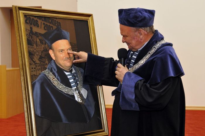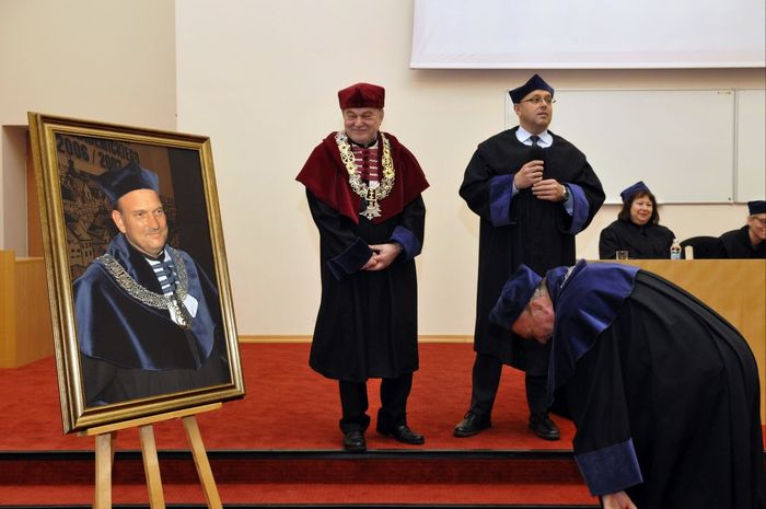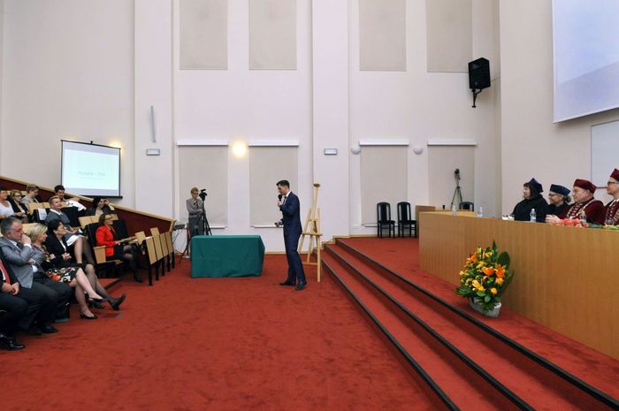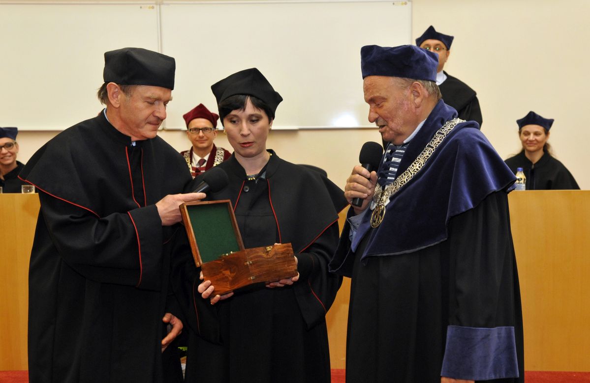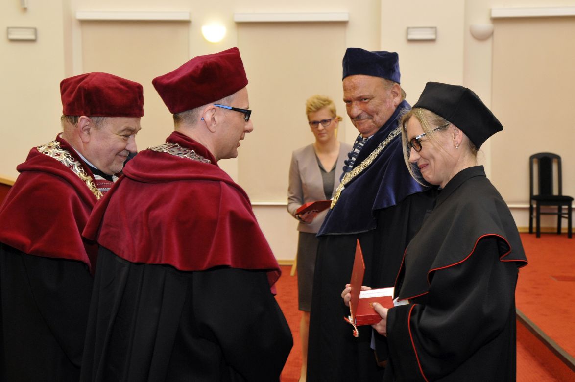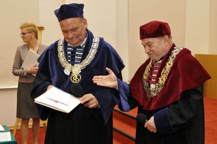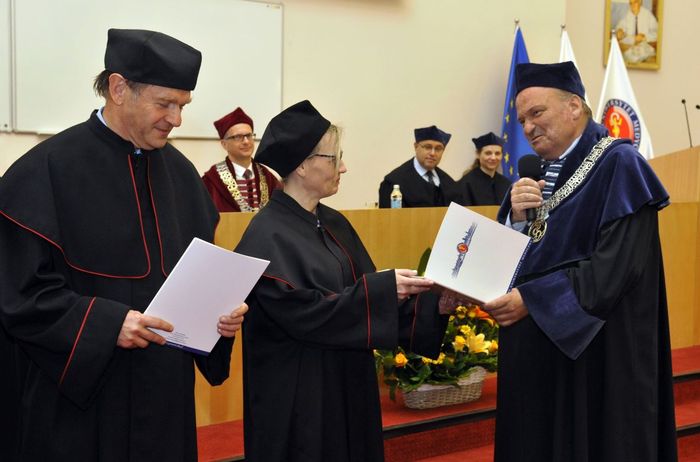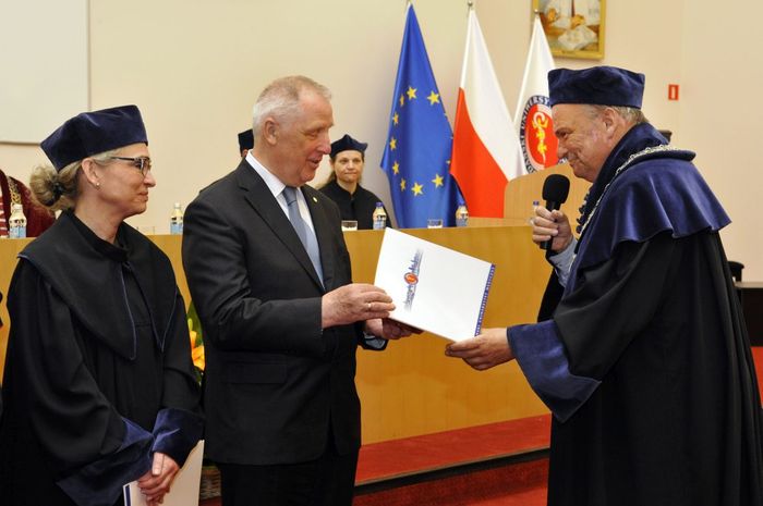 Gratulacje z powodu wspaniałego rozwoju Wydziału złożył prof. Marcin Gruchała. W imieniu nieobecnego na uroczystości rektora prof. Janusza Morysia, Rektor elekt odznaczył Medalem Zasłużonemu AMG prof. Piotra Lassa i dr hab. Aleksandrę Gaworską-Krzemińską. Natomiast mgr Paweł Klikowicz, uczestnik Stacjonarnych Studiów Doktoranckich, przedstawił zabawną prezentację o tym jak to jest być studentem i doktorantem na WNoZ.