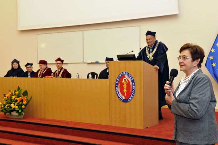 Oprócz Członków Rady Wydziału Nauk o Zdrowiu w posiedzeniu uczestniczyło wielu obecnych i byłych pracowników naukowo-dydaktycznych oraz administracyjnych zatrudnionych na Wydziale, a także studenci i doktoranci. Okolicznościowe przemówienia wygłosili: dziekan prof. Piotr Lass i prof. Andrzej Basiński. Dr hab. Aleksandra Gaworska-Krzemińska, kierownik Katedry Pielęgniarstwa, przedstawiła prezentację obrazującą dynamiczny rozwój Oddziału Pielęgniarstwa od 1999 r.